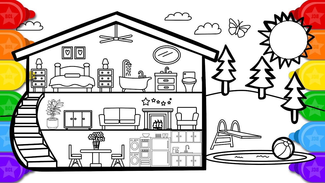![Раскраска мой дом с комнатами]()