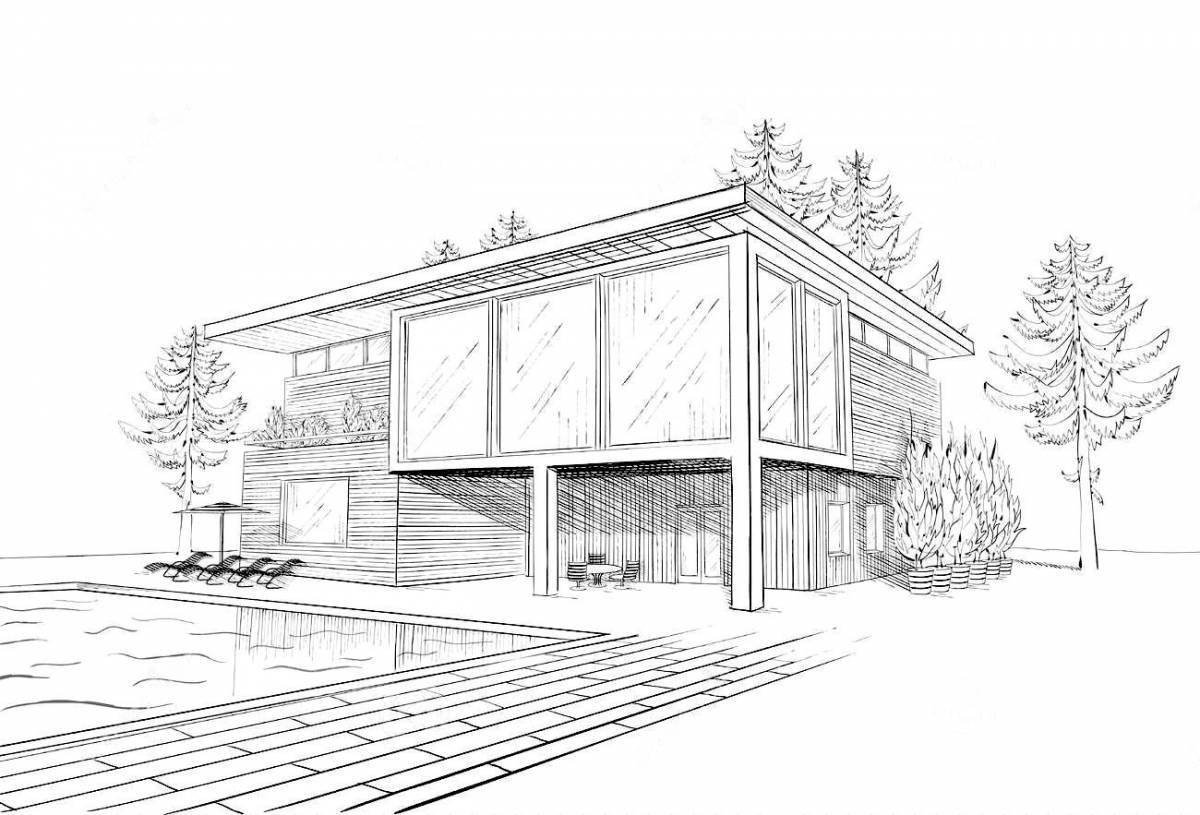 ![Дом в современном стиле карандашом]()