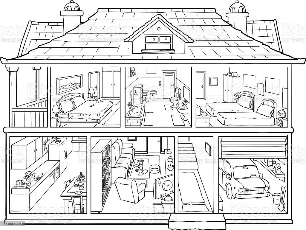 Дом с комнатами раскраска для детей