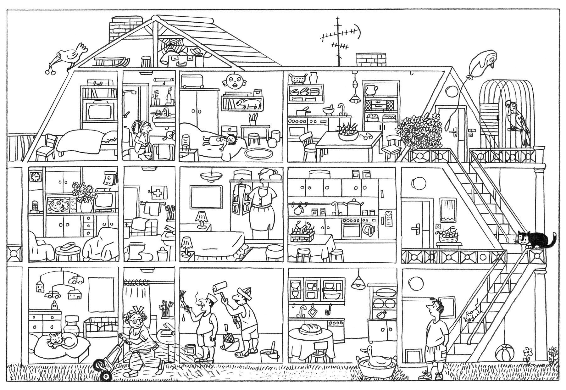![Кукольный домик в разрезе чб]()