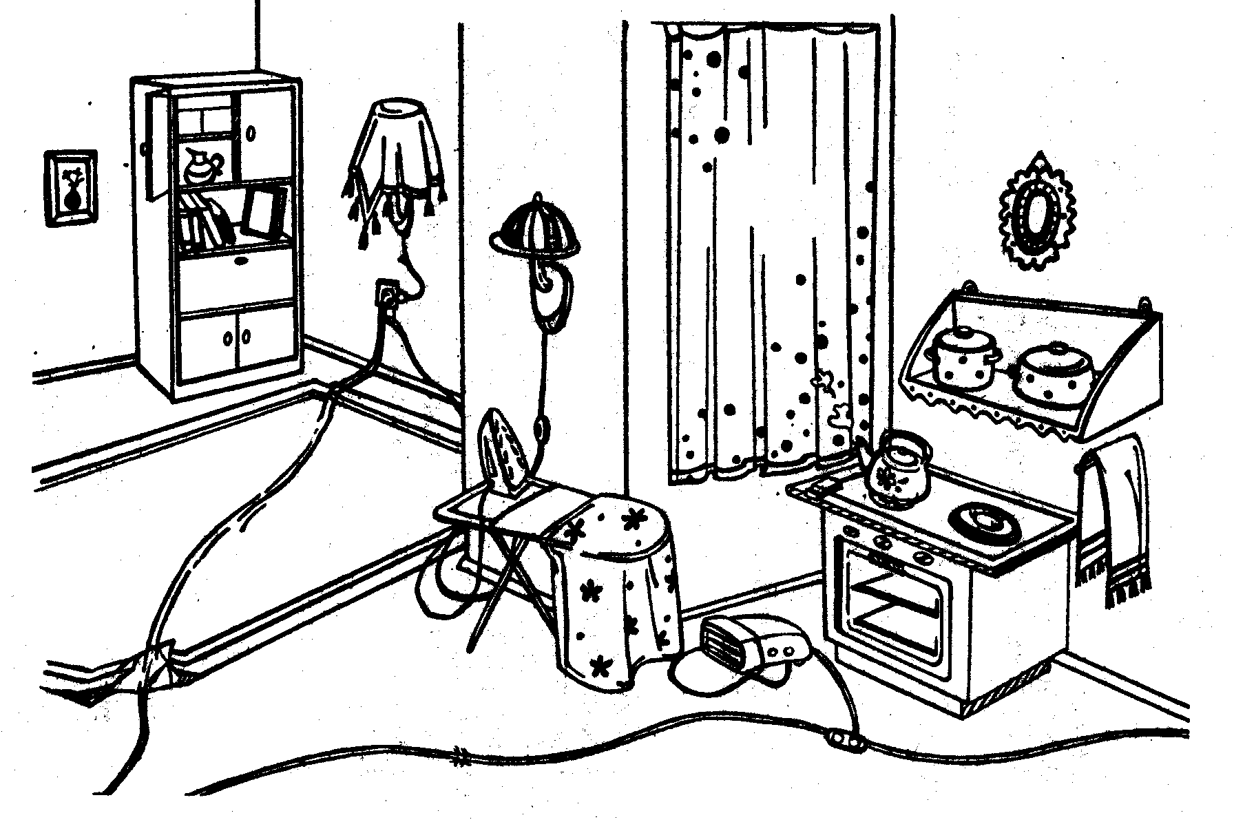 Опасность в доме для детей раскраска