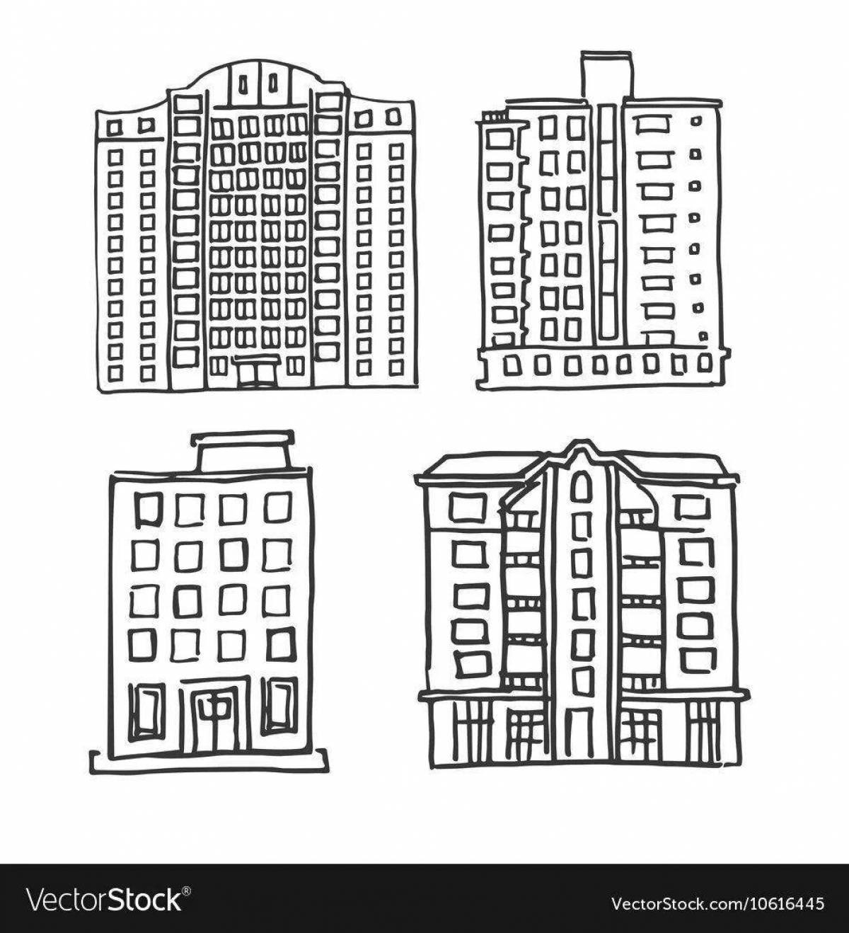 Многоэтажный дом раскраска