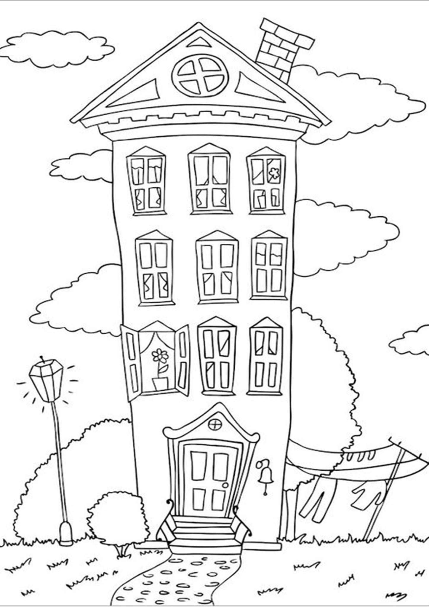 Многоэтажный домик раскраска для детей