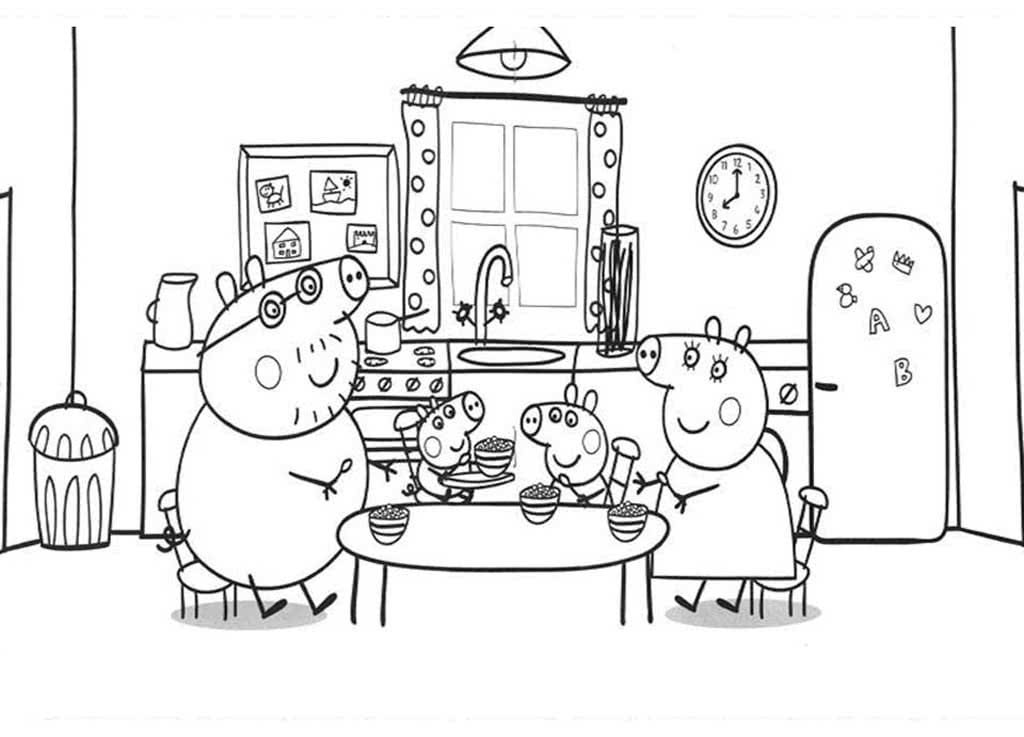 ![Раскраска Свинка Пеппа за столом]()