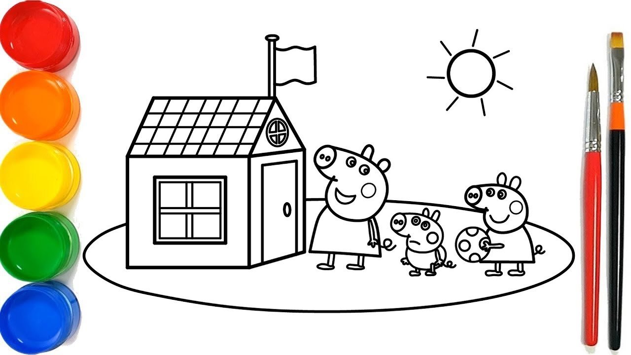 Свинка Пеппа домик разукрашка
