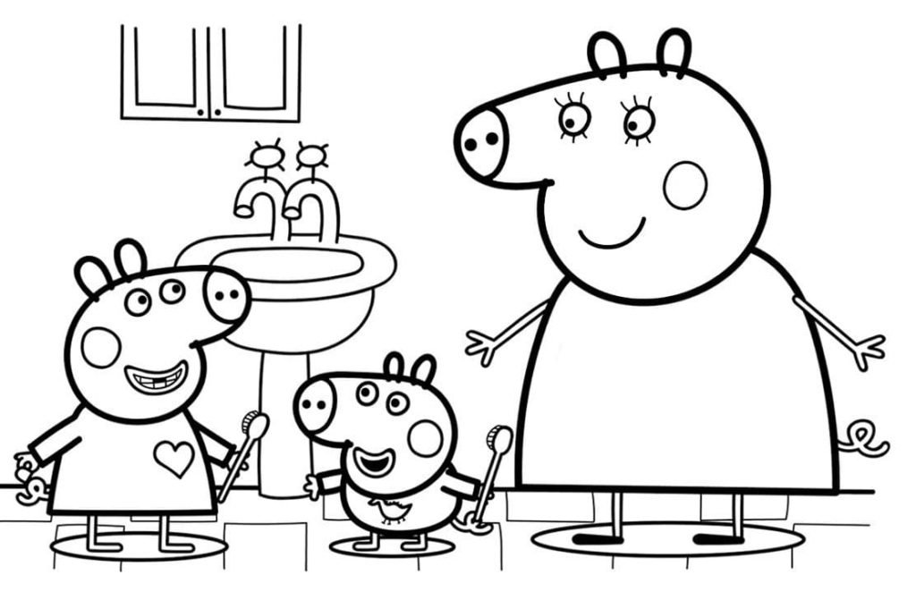 Семья свинки Пеппы раскраска