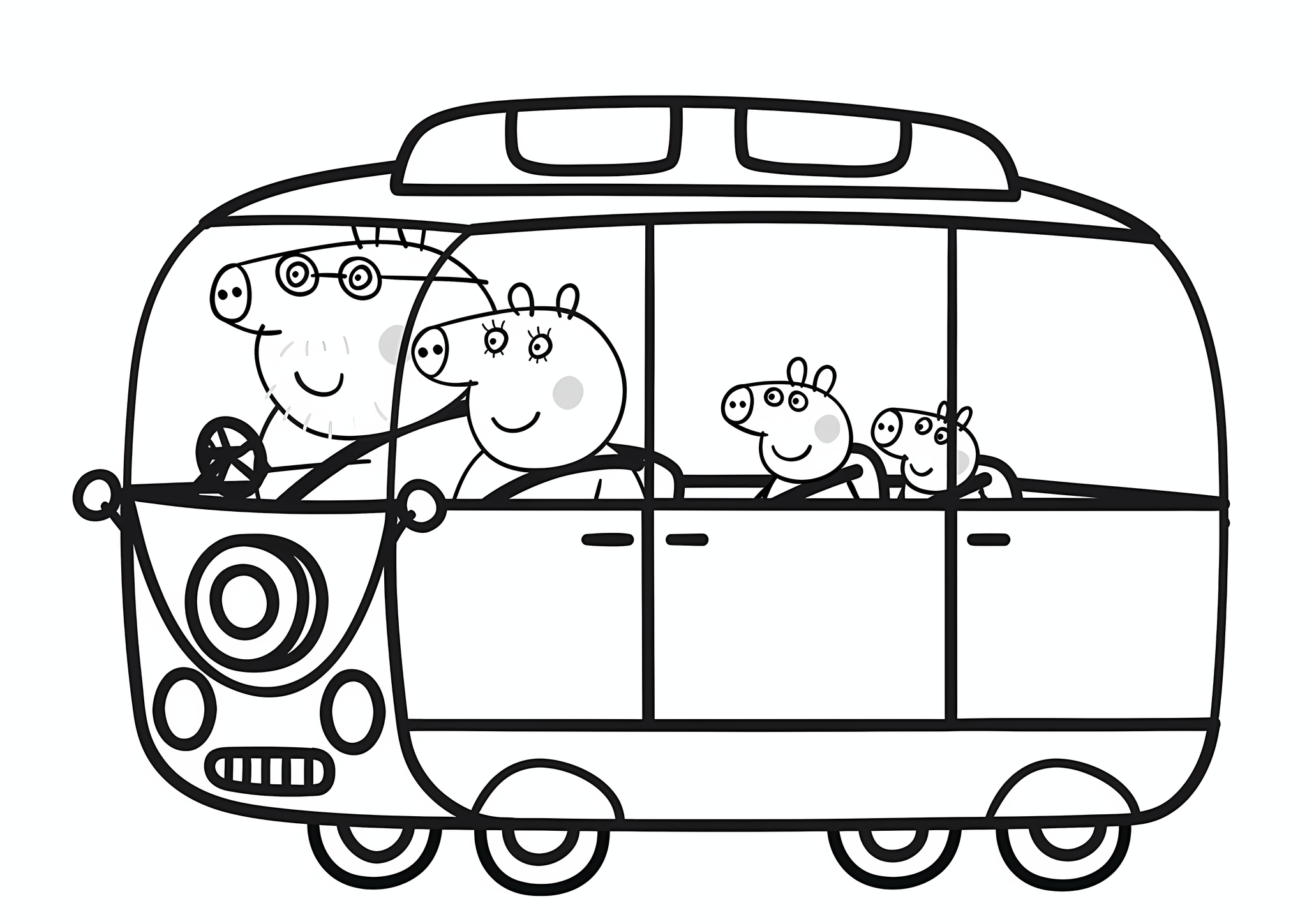 ![Раскраска Свинка Пеппа в автобусе]()
