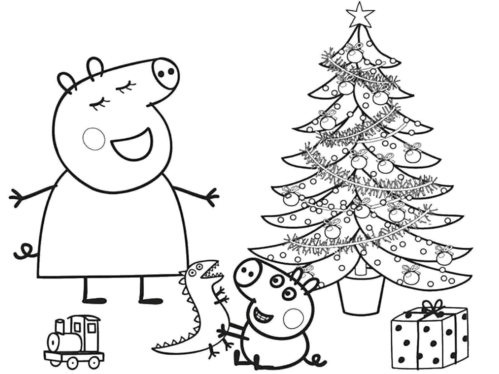 Раскраска Свинка Пеппа новый год