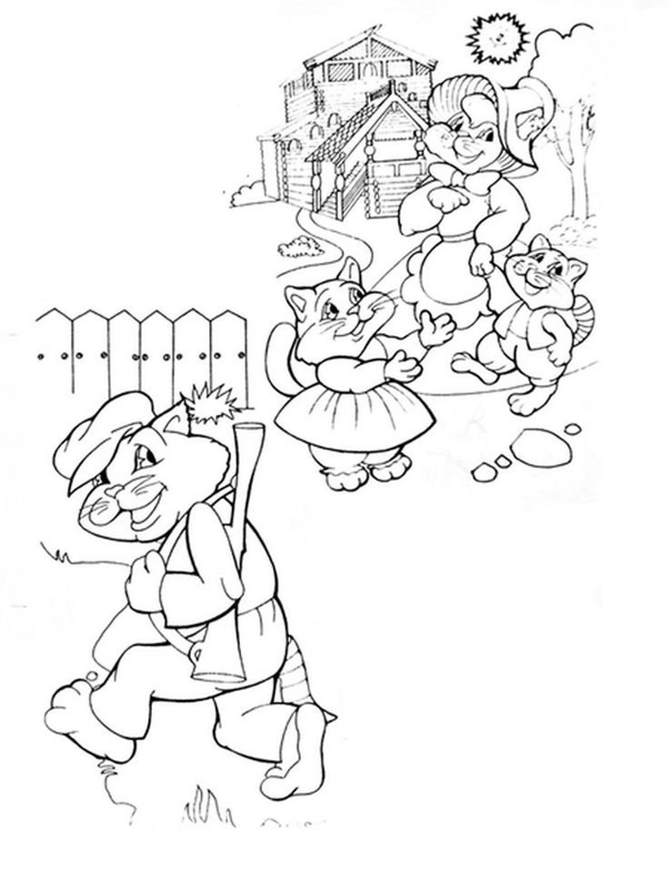 ![Раскраска кот Василий из сказки Кошкин дом]()