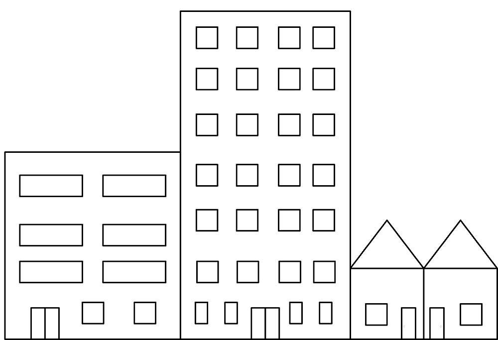 ![Многоэтажный дом трафарет]()