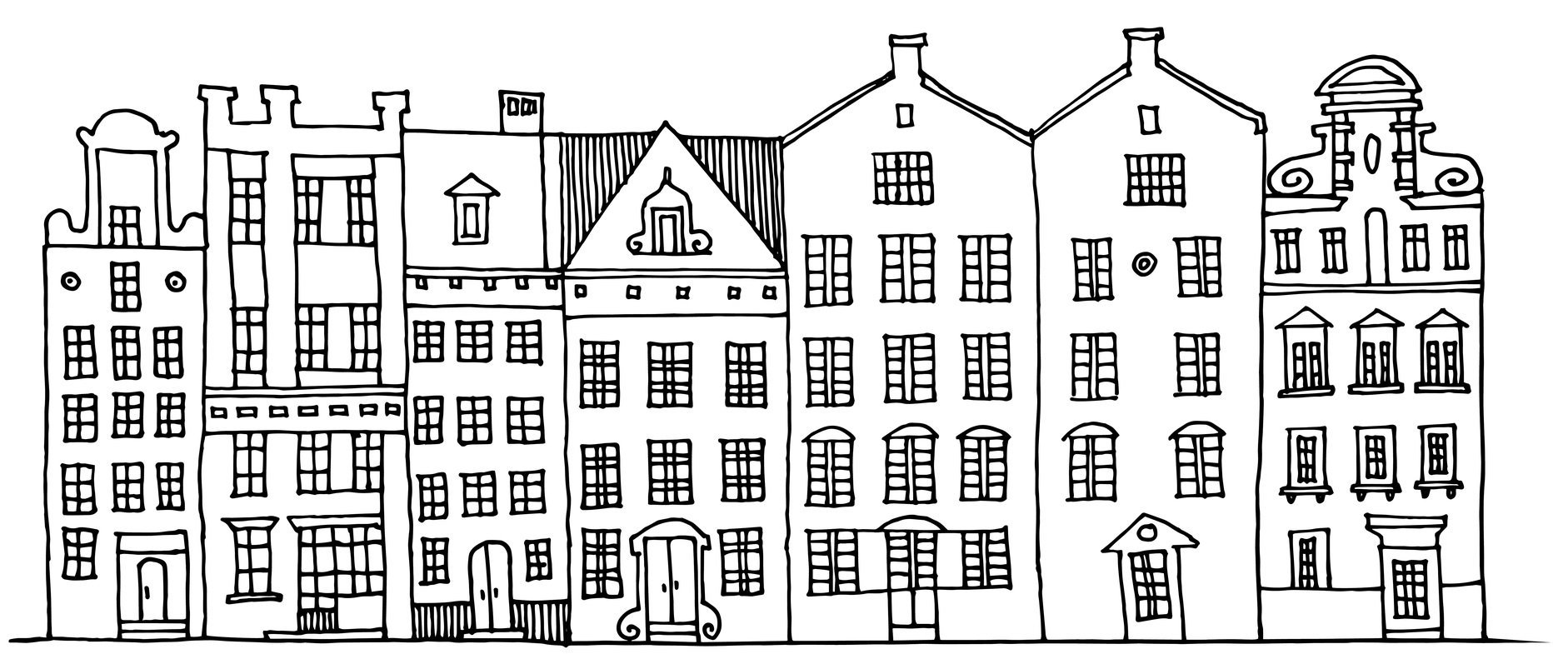 ![Многоэтажные здания раскраска]()