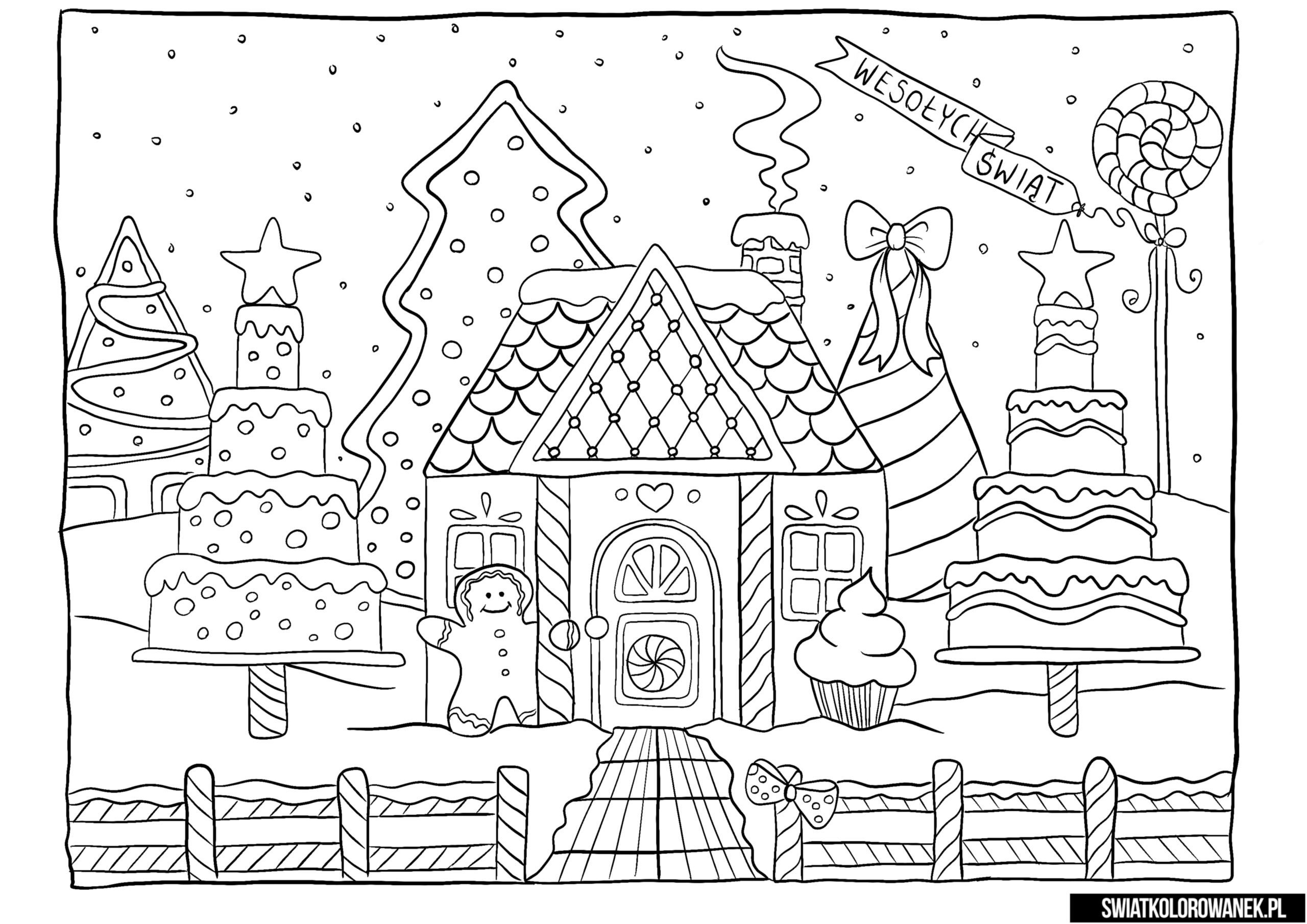 Раскраски новогодние Пряничные домики