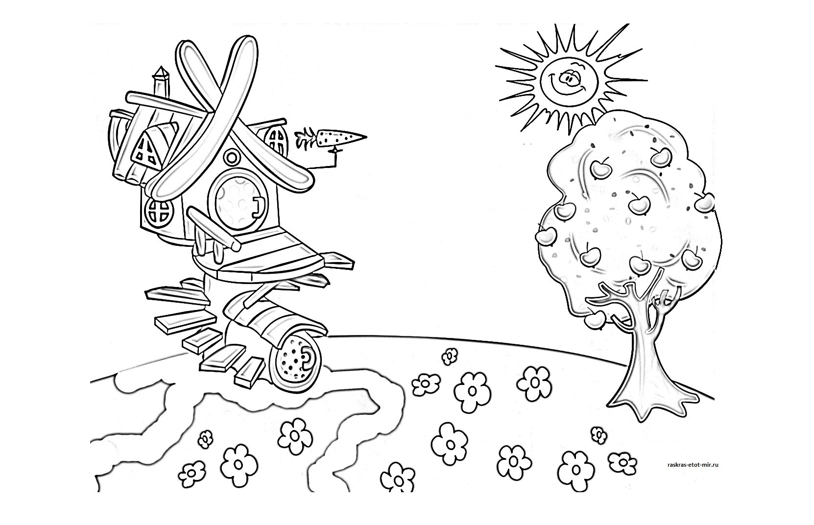 Домик Совуньи из смешариков раскраска