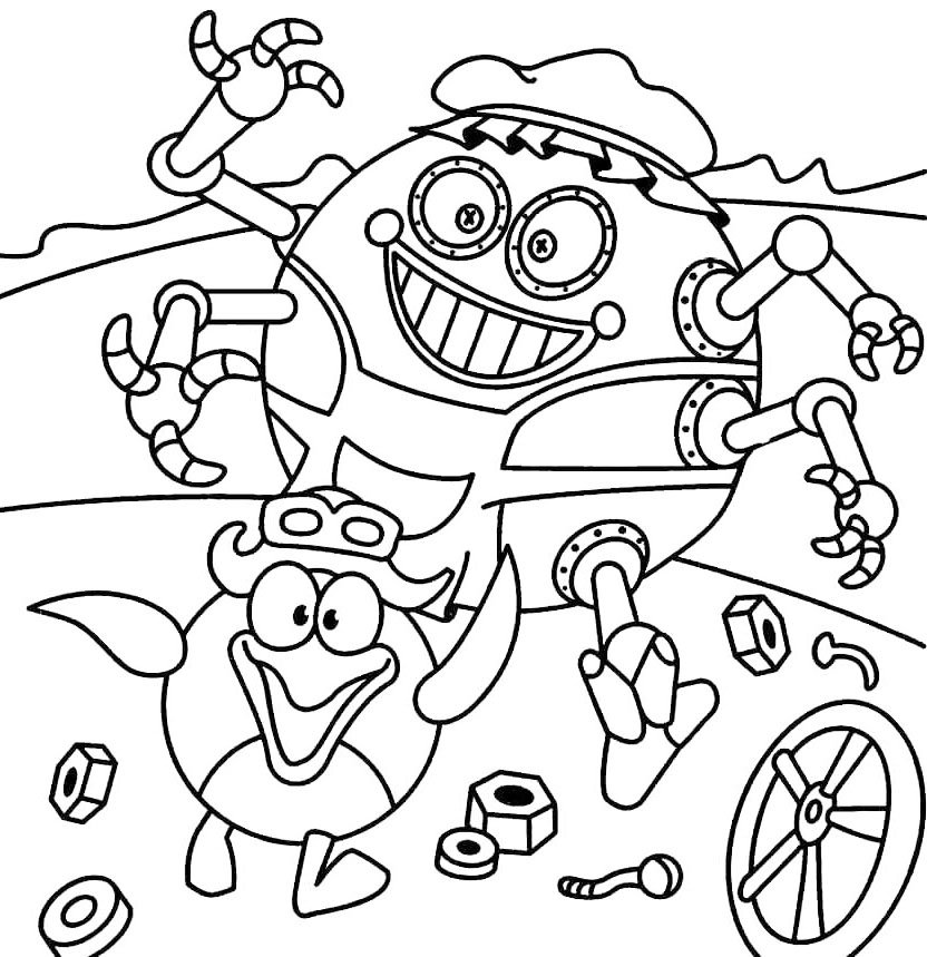 ![Раскраска Смешарики робот няня]()