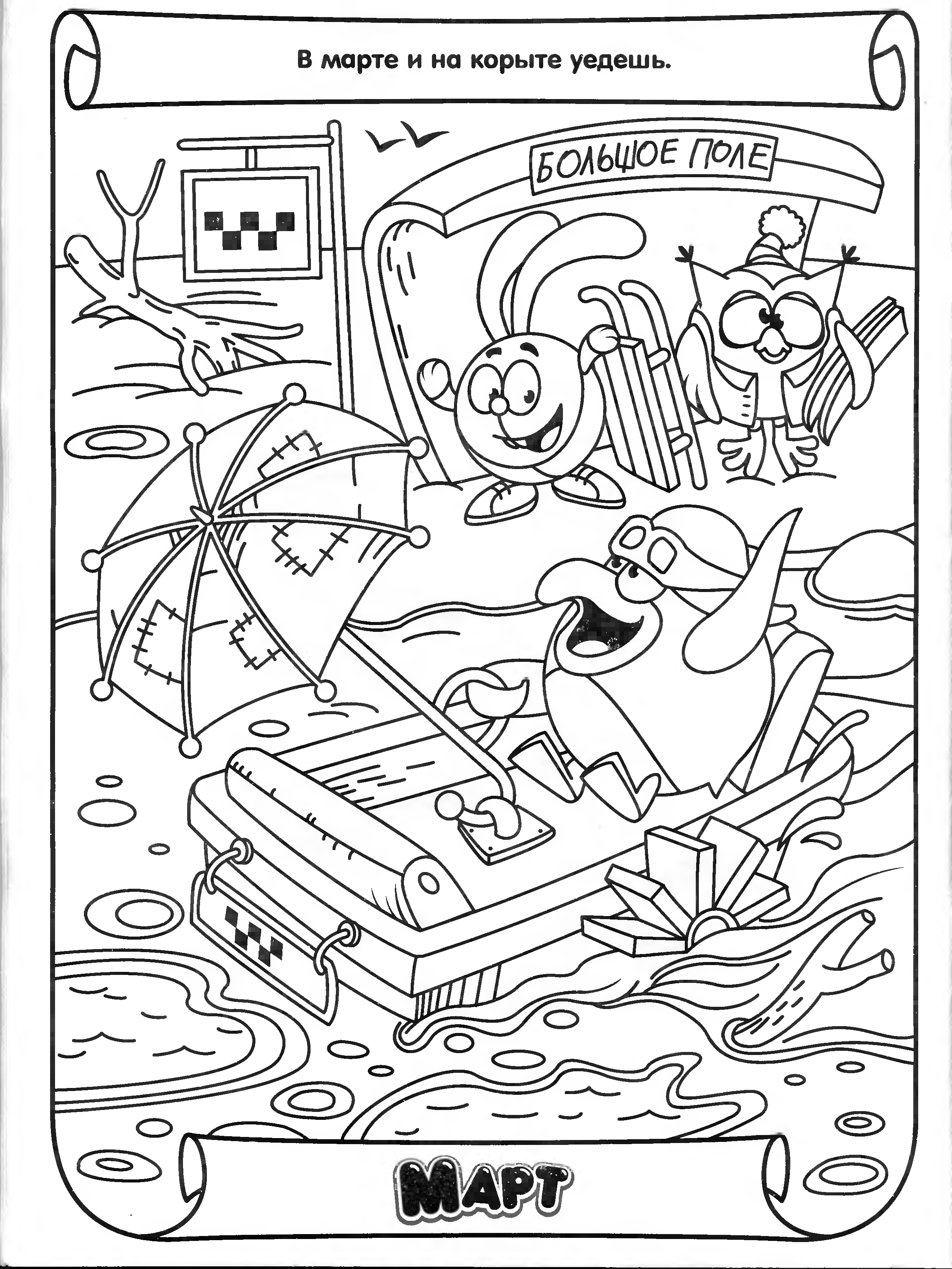 Раскраски Смешарики Весна