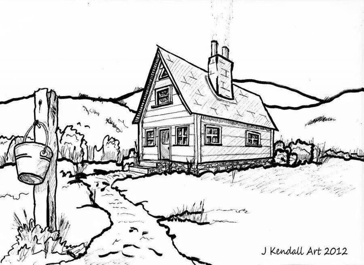 Деревенский дом раскраска