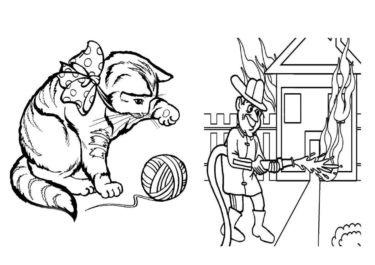 ![Раскраска Кошкин дом пожар]()