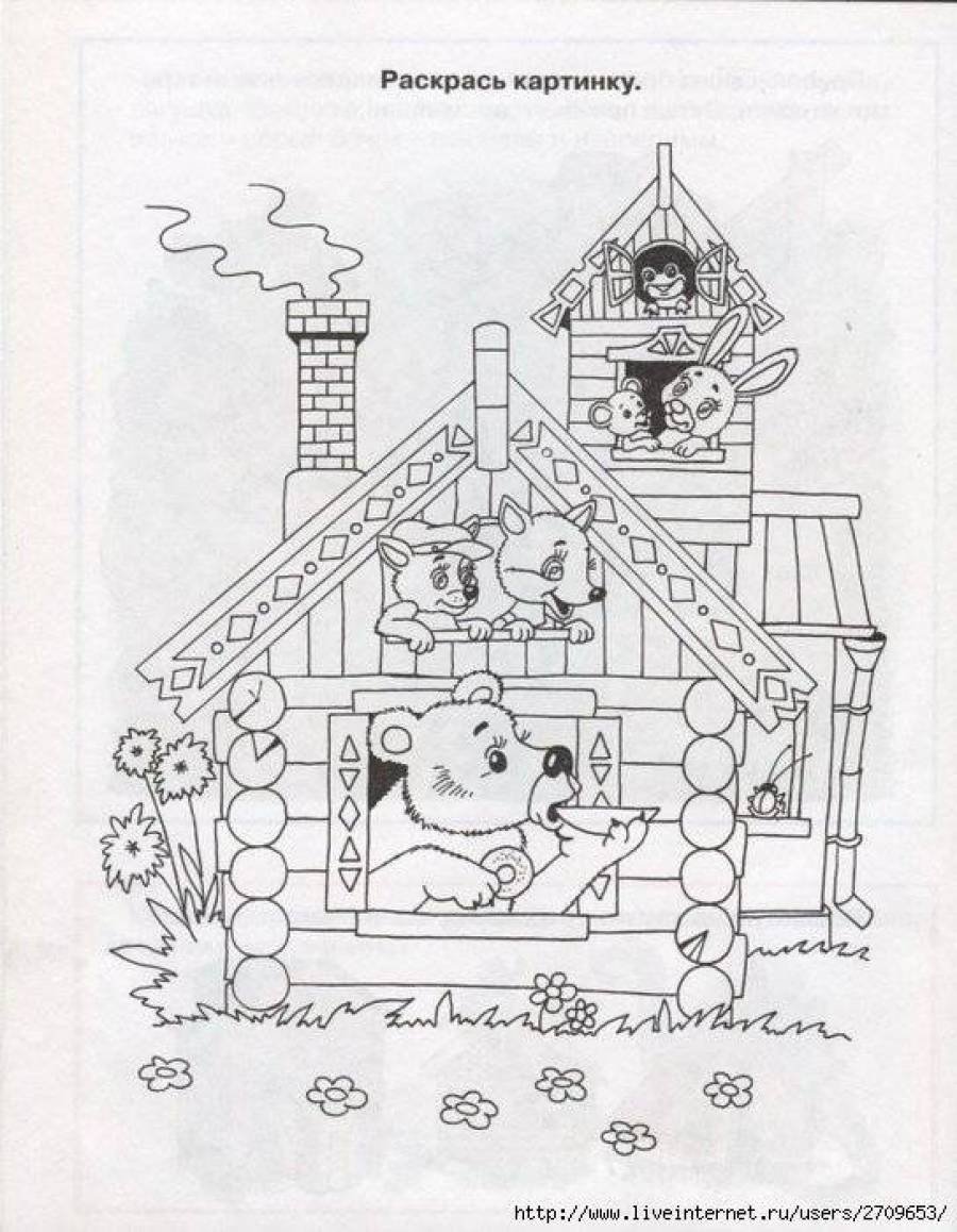 ![Кошкин дом картинки для детей раскраски]()