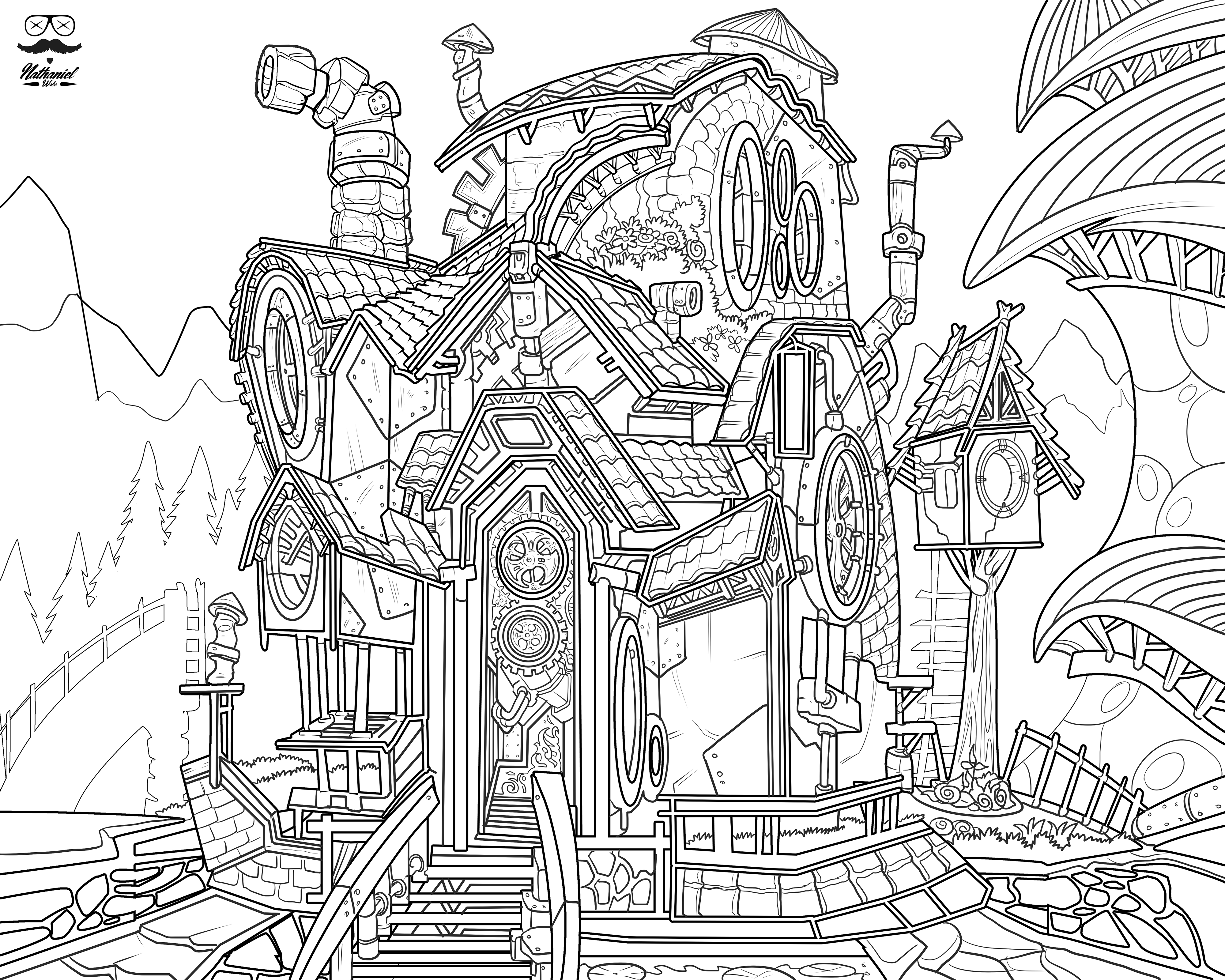 Сказочный пейзаж раскраска