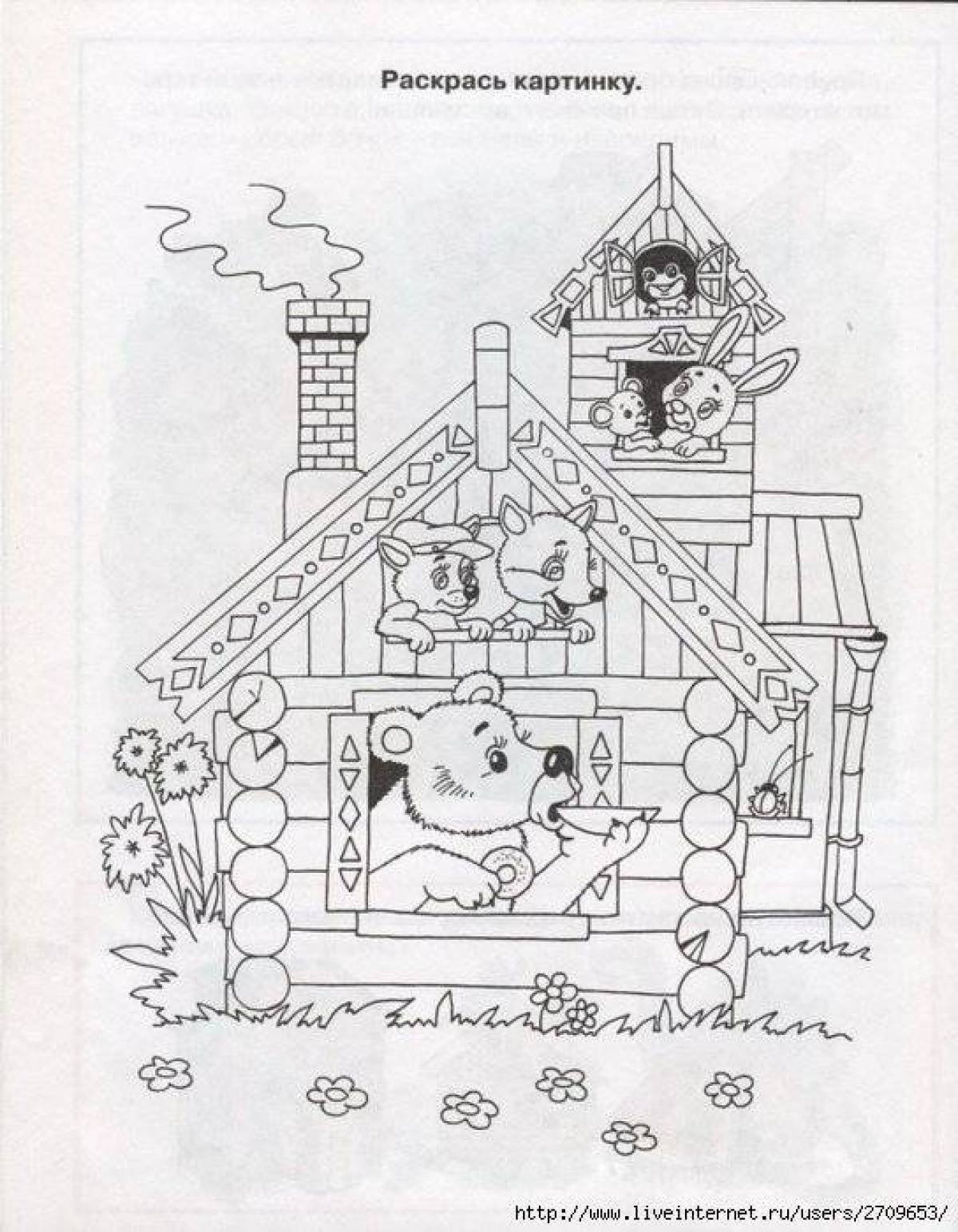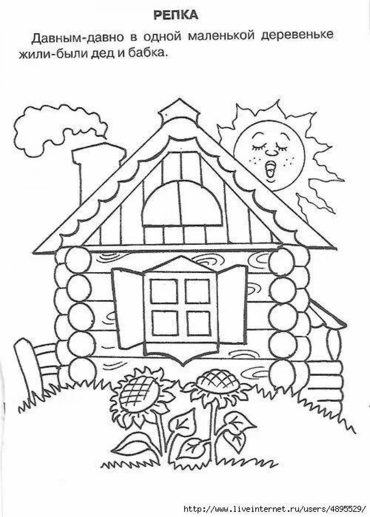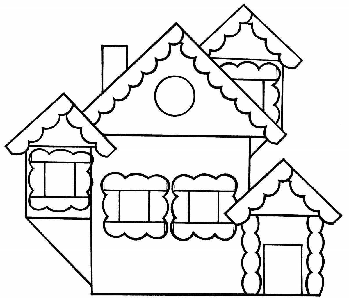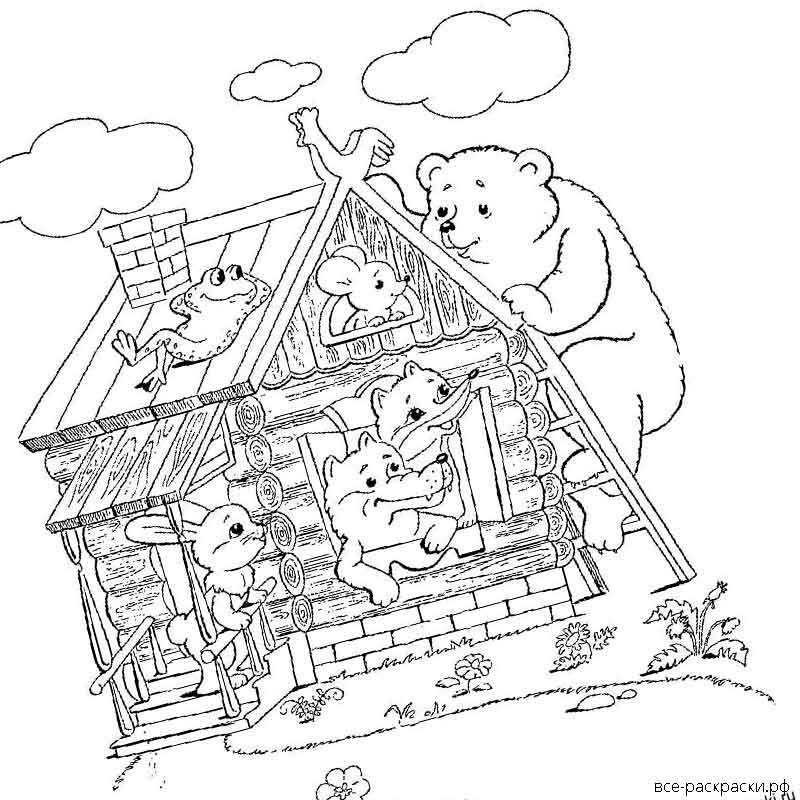 ![Раскраска домик Теремок для детей 3-4 лет]()