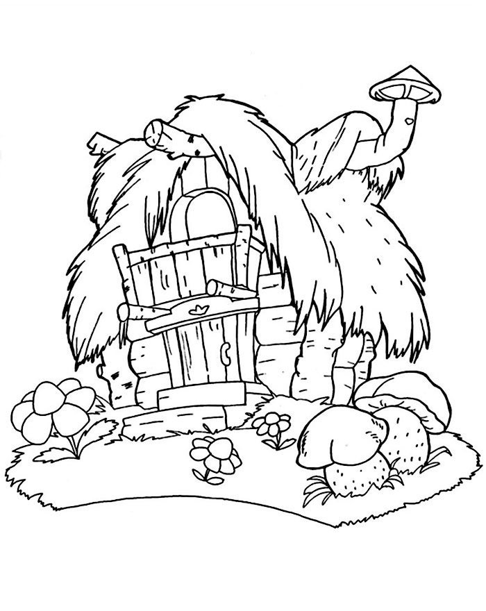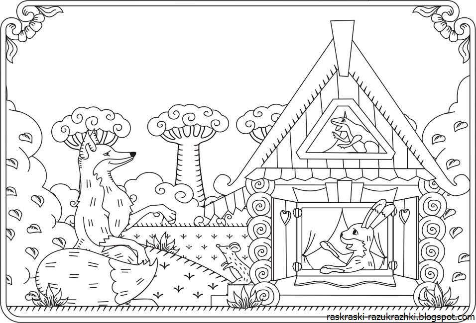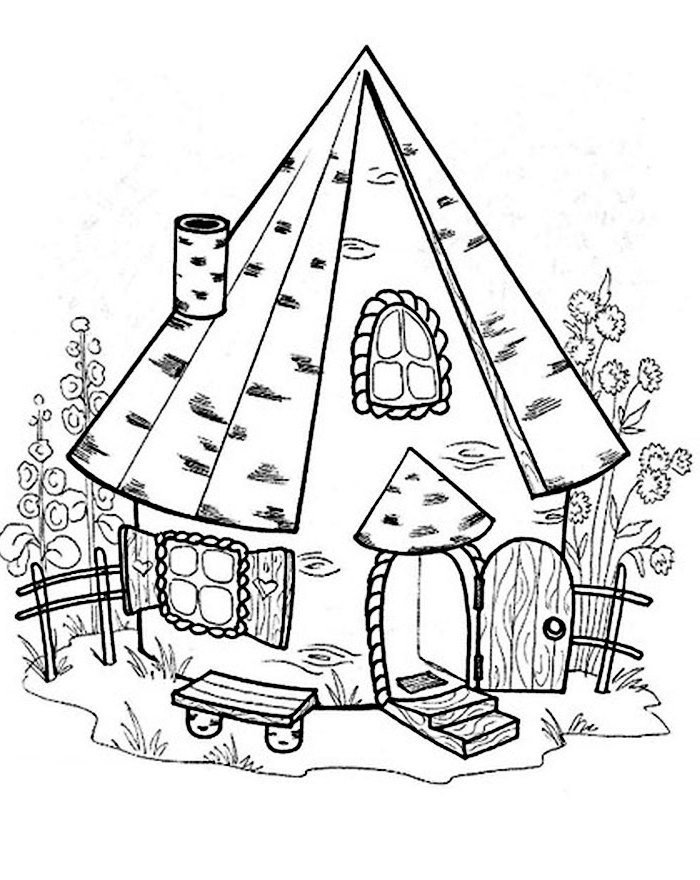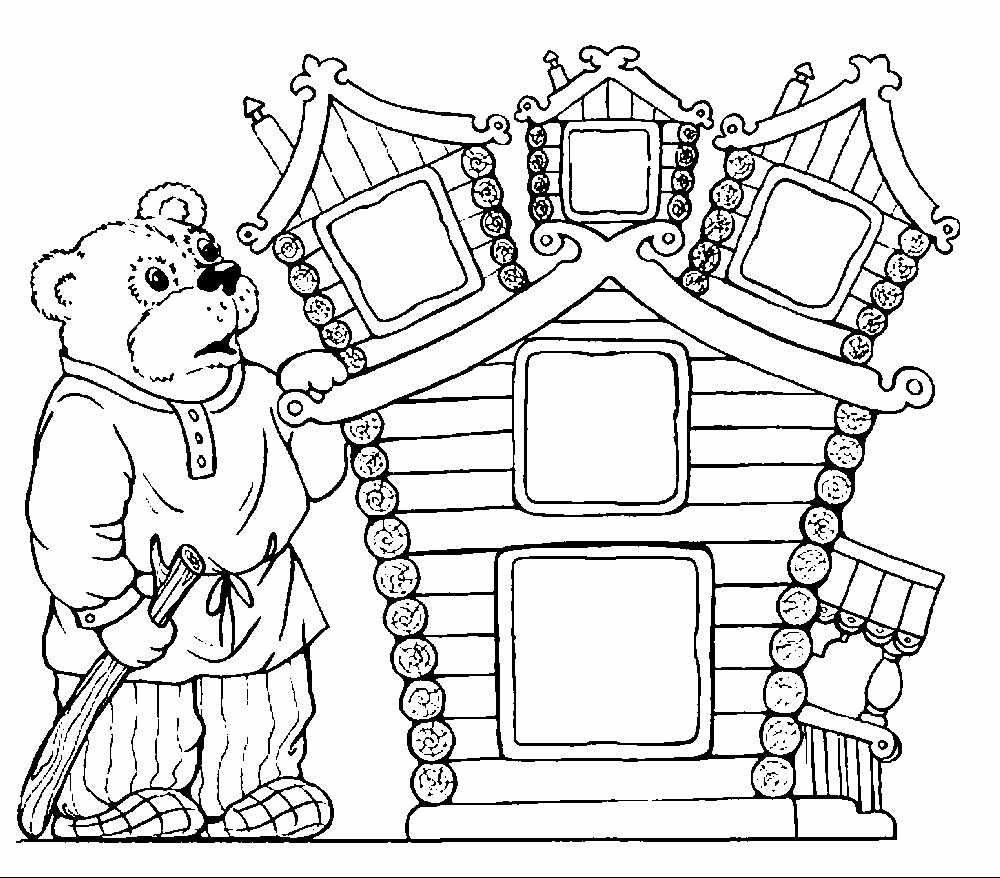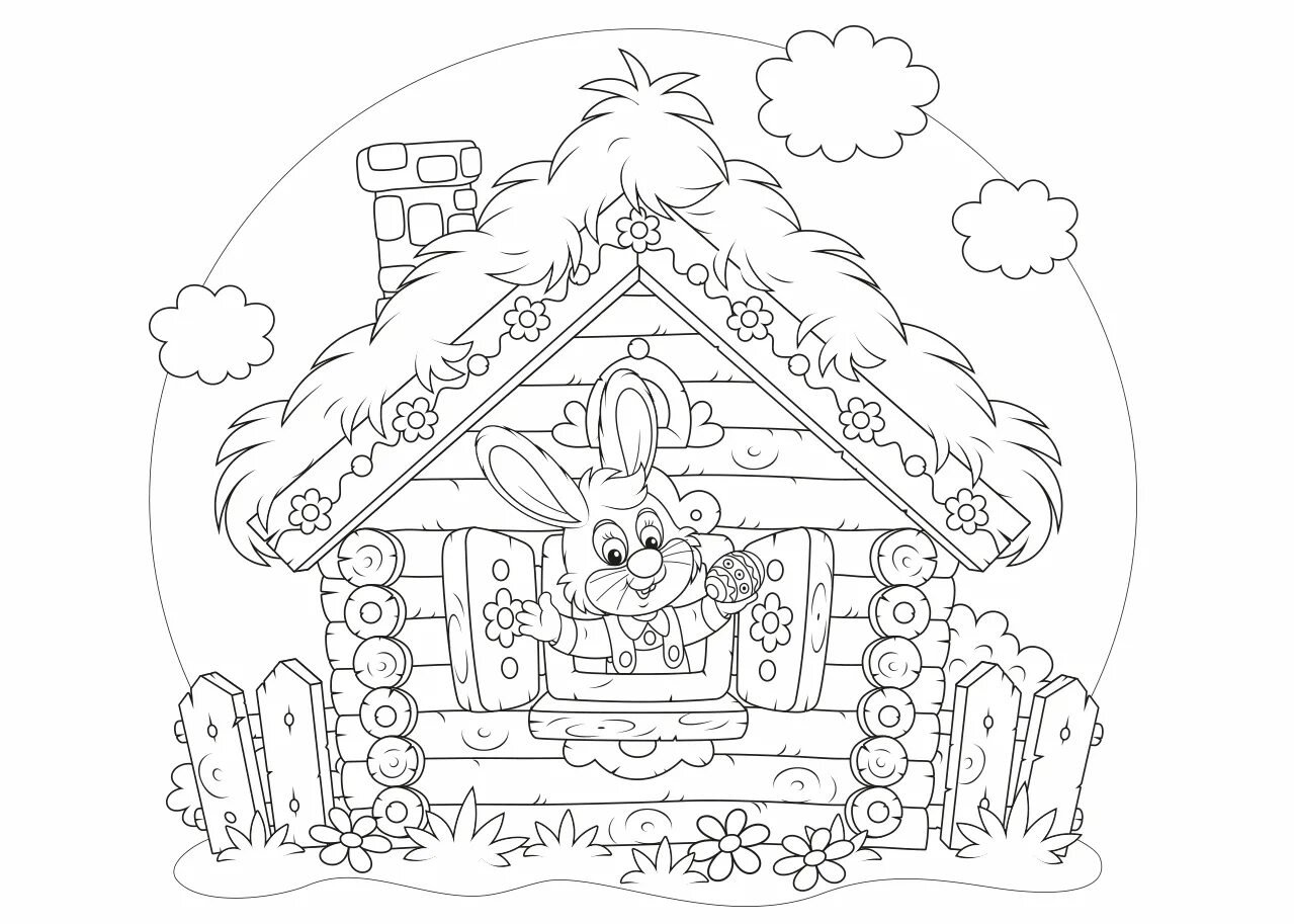 ![Раскраска домик Теремок для детей 3-4 лет]()