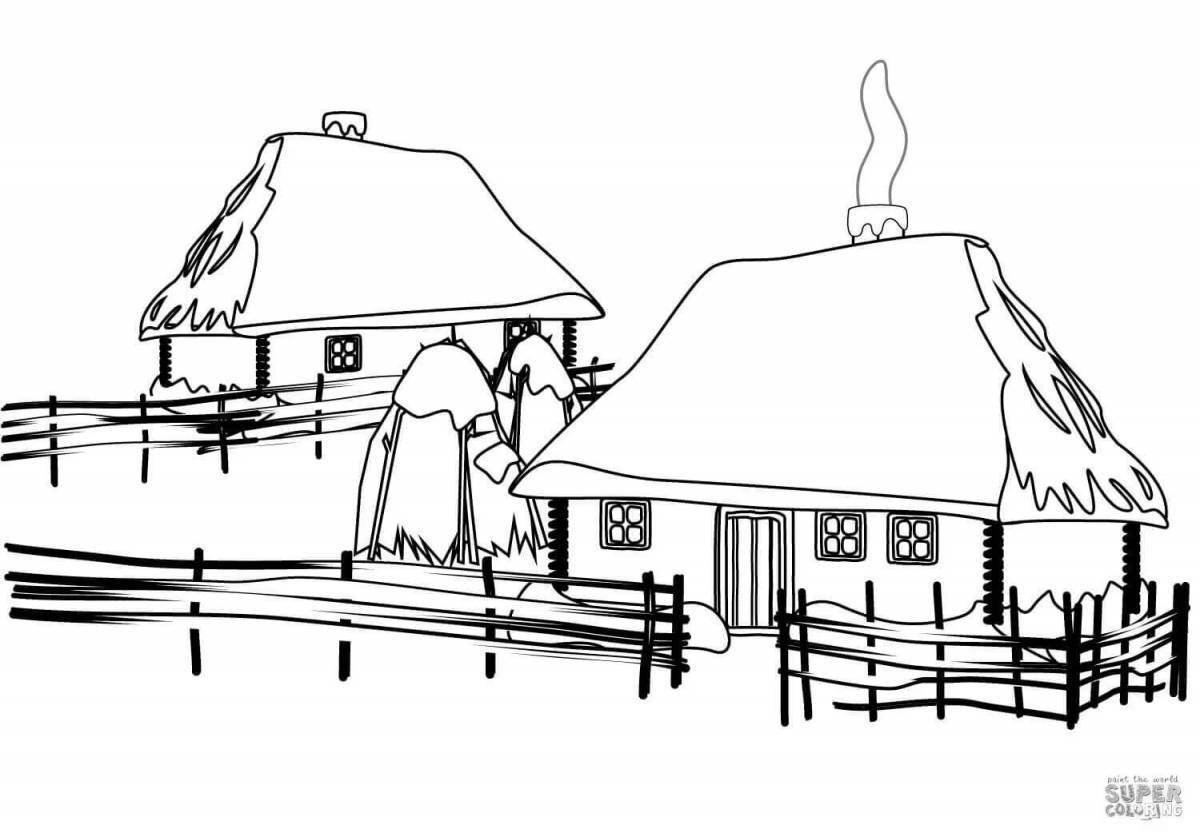 Раскраска домик в деревне