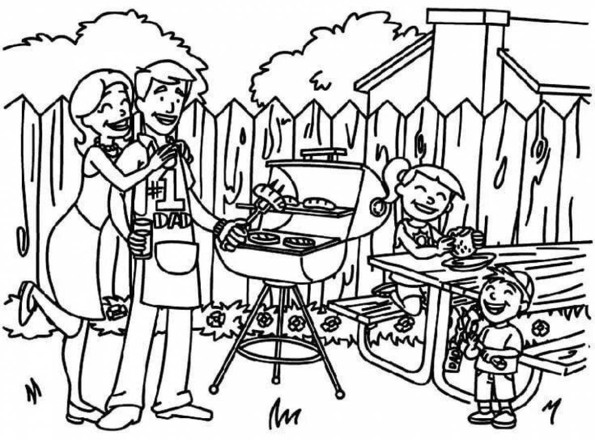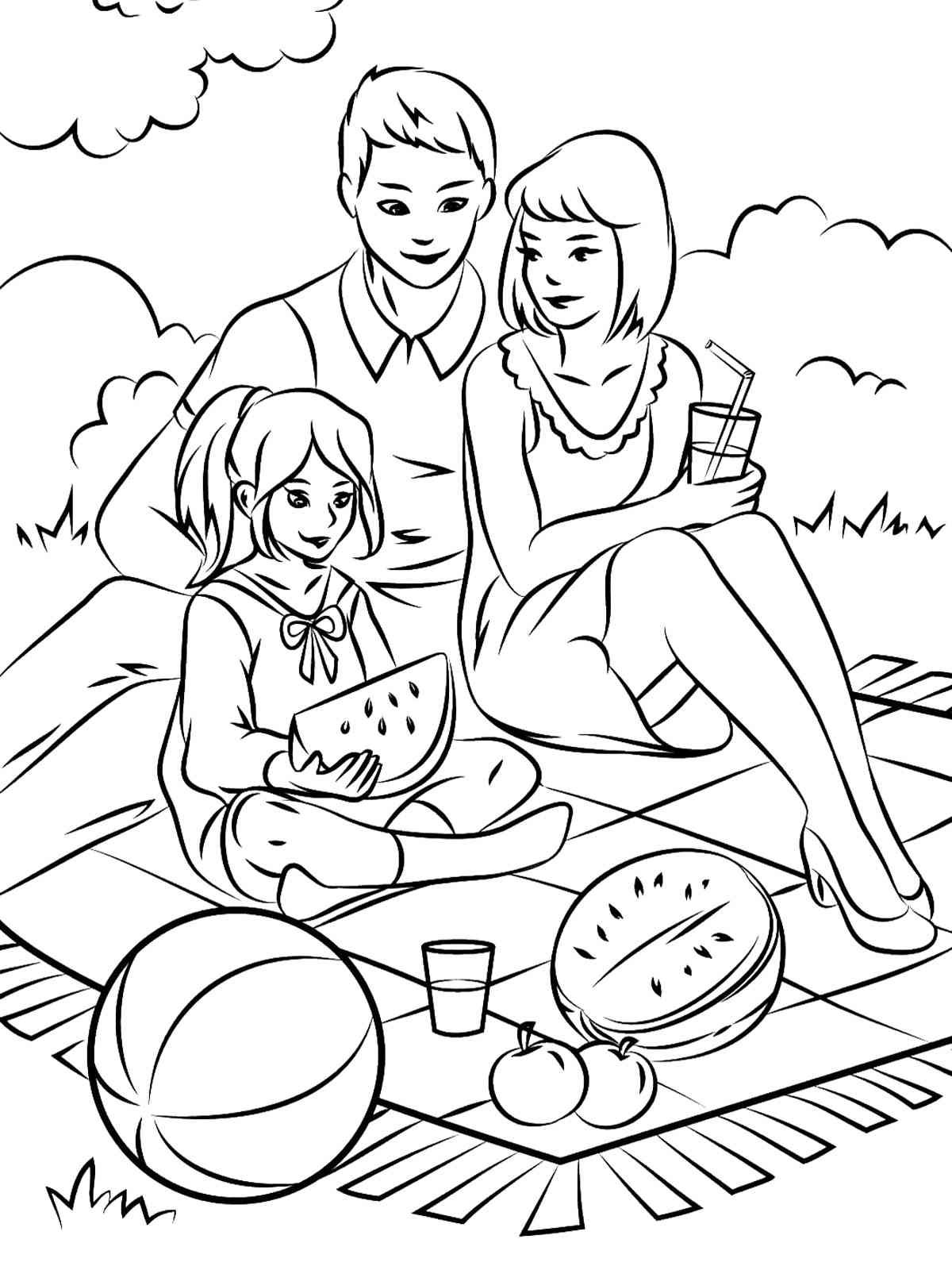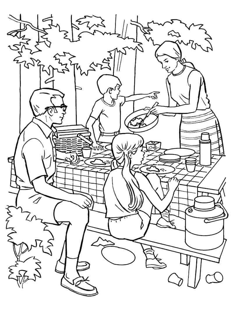 ![Раскраска семья на пикнике]()