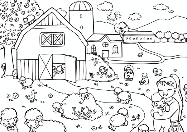 ![В деревне. Раскраска]()