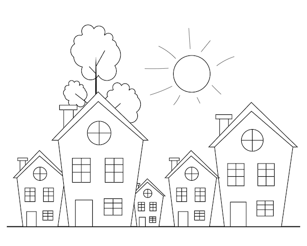 Стилизованные домики контурные