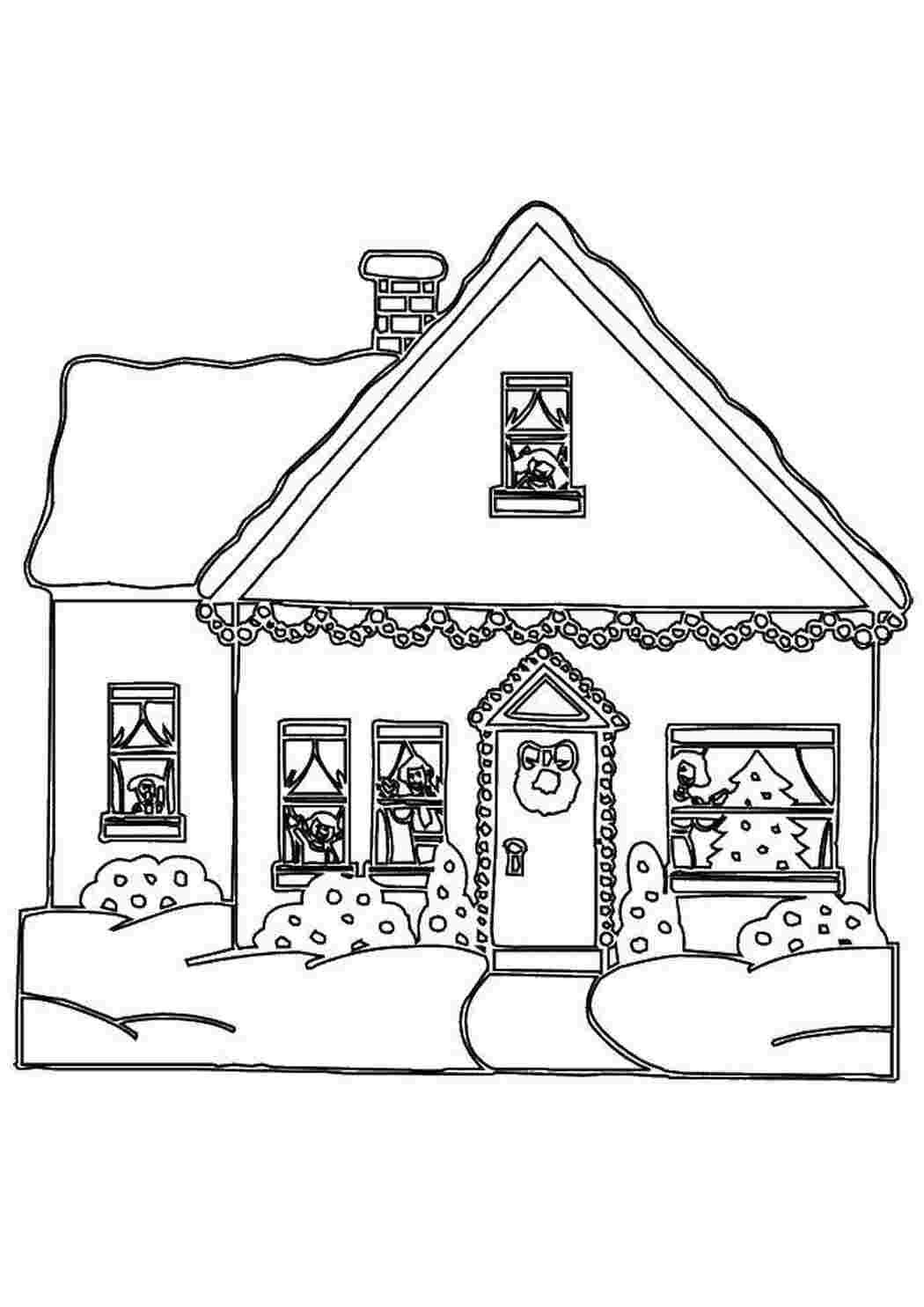 ![Картинка домик раскраска]()