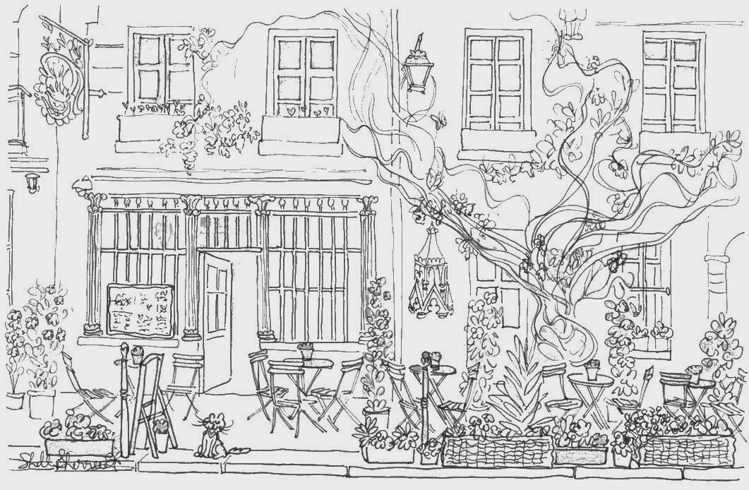 ![Здание кафе раскраска]()