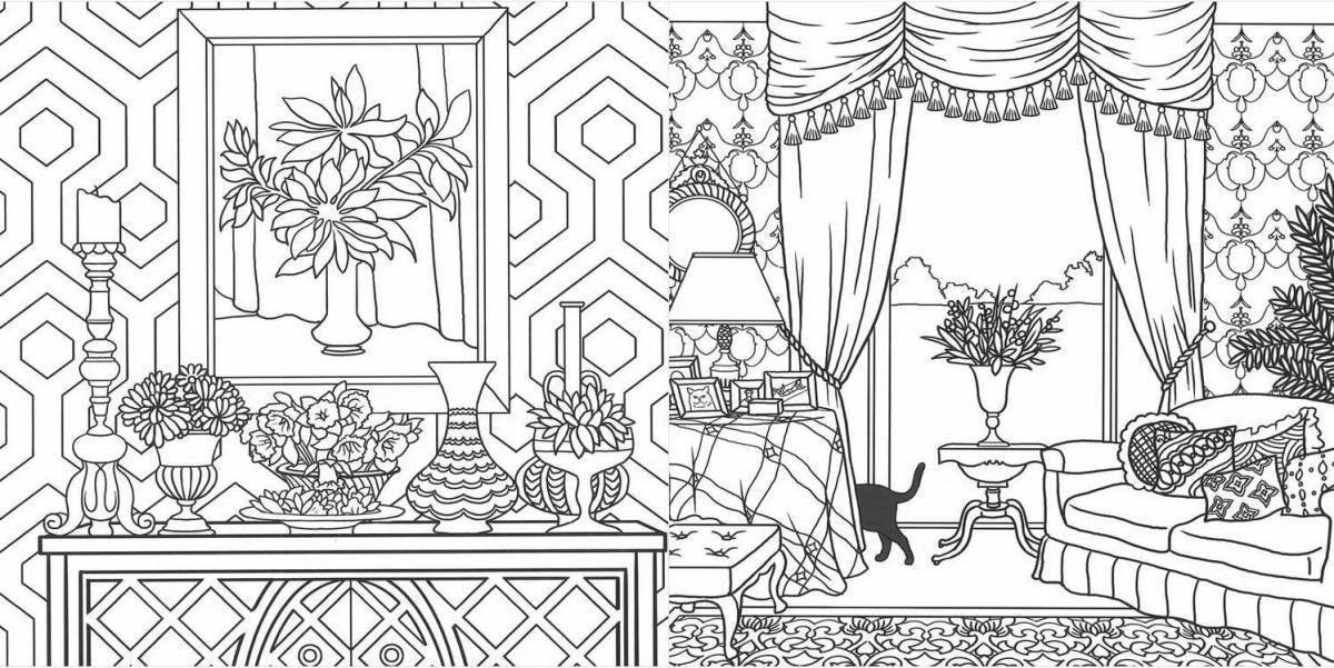 ![Арт раскраска с интерьером]()