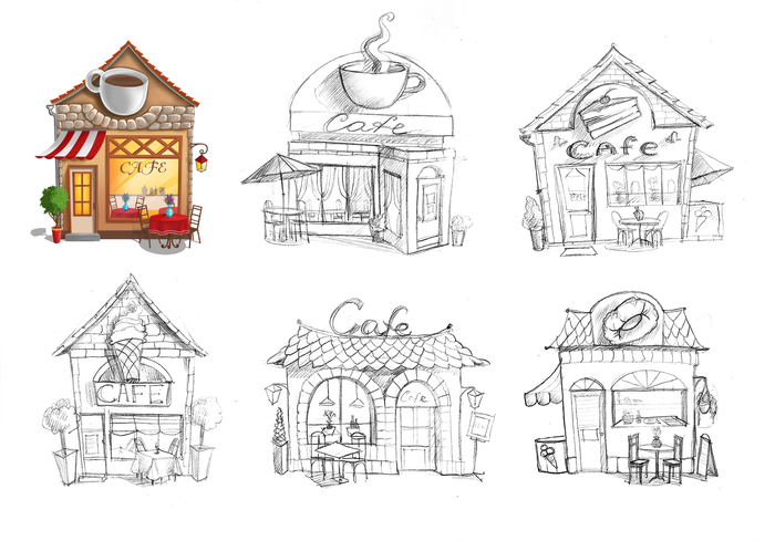 ![Домик кафе иллюстрация]()