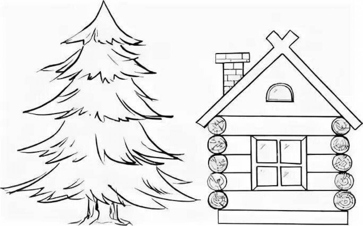 Домик с елочкой раскраска
