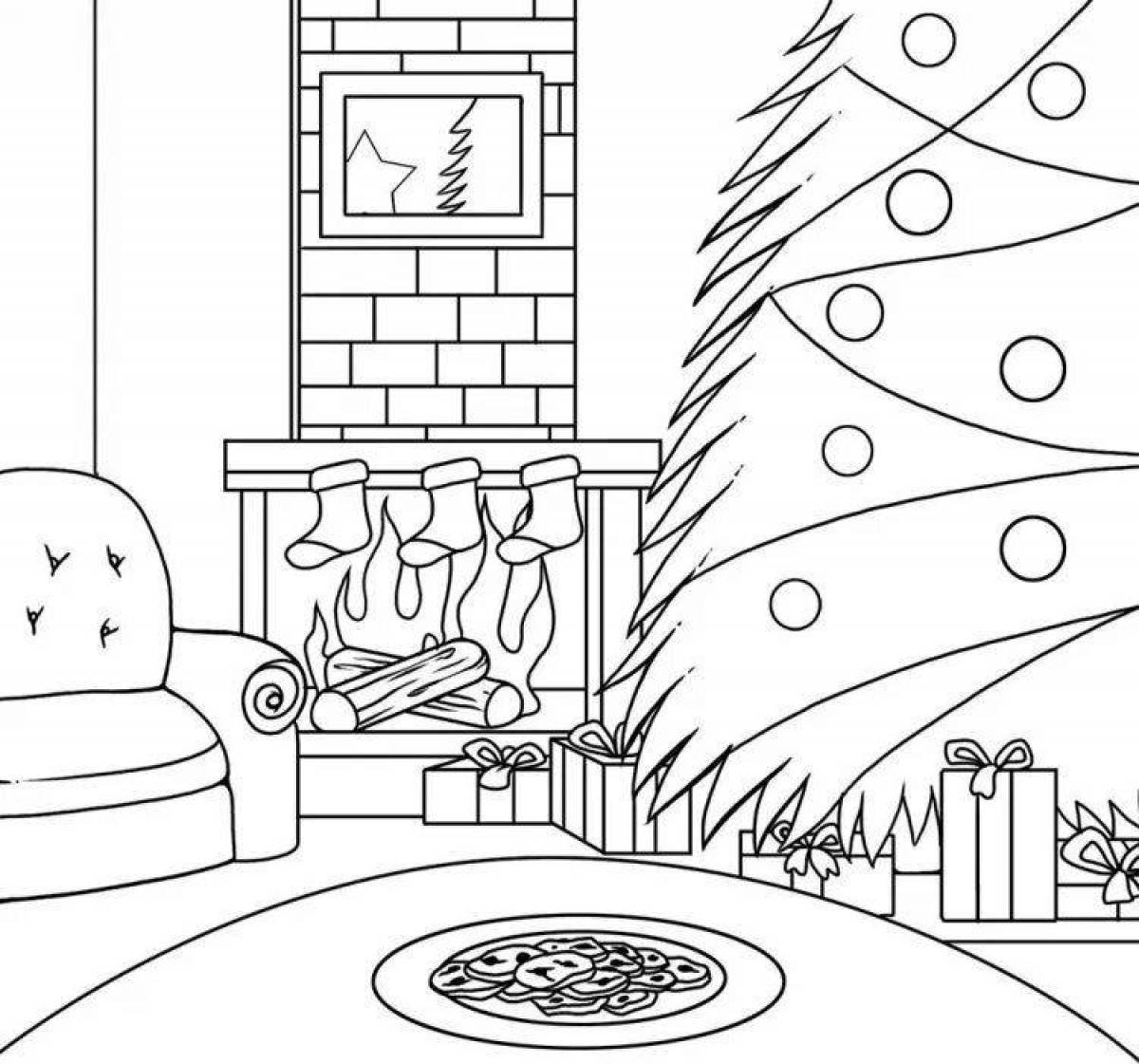 Новогодний камин раскраска