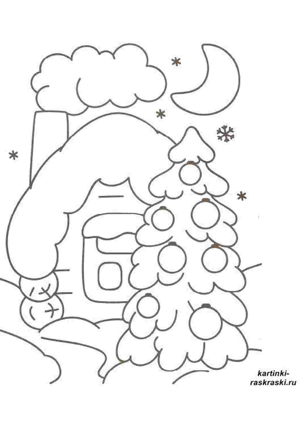 ![Раскраска зимний дом]()