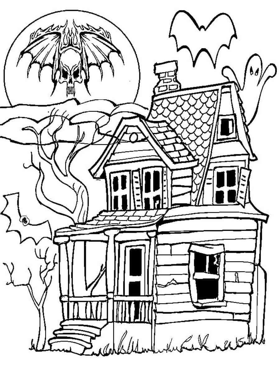 ![Раскраска дом с привидениями]()