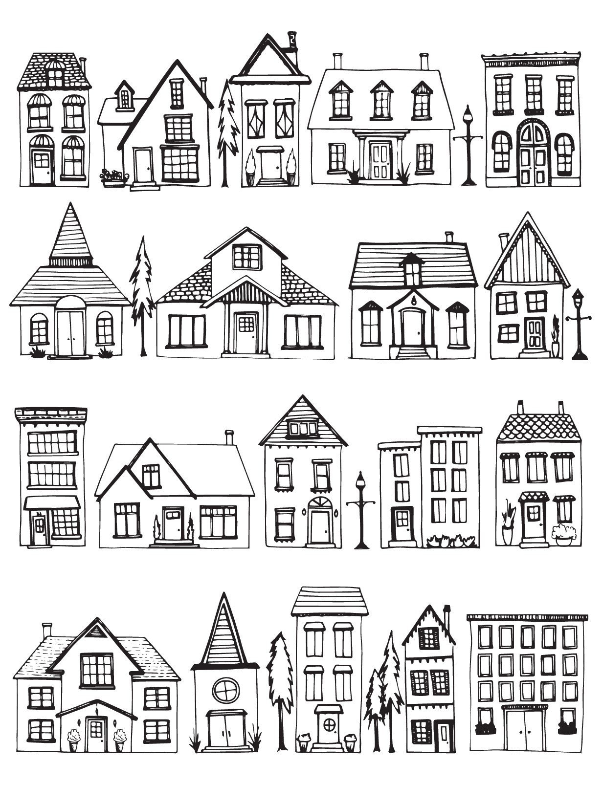 Раскраска. Домики