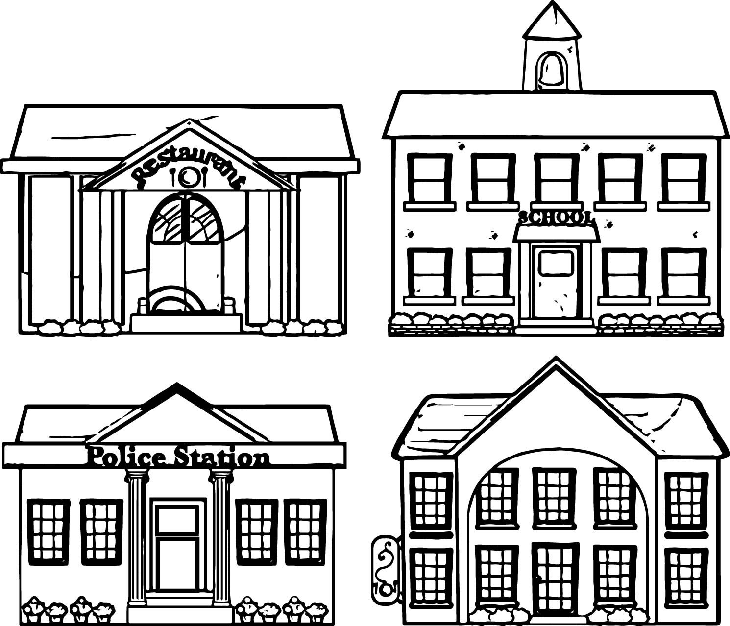 ![Раскраски зданий и домов для детей]()
