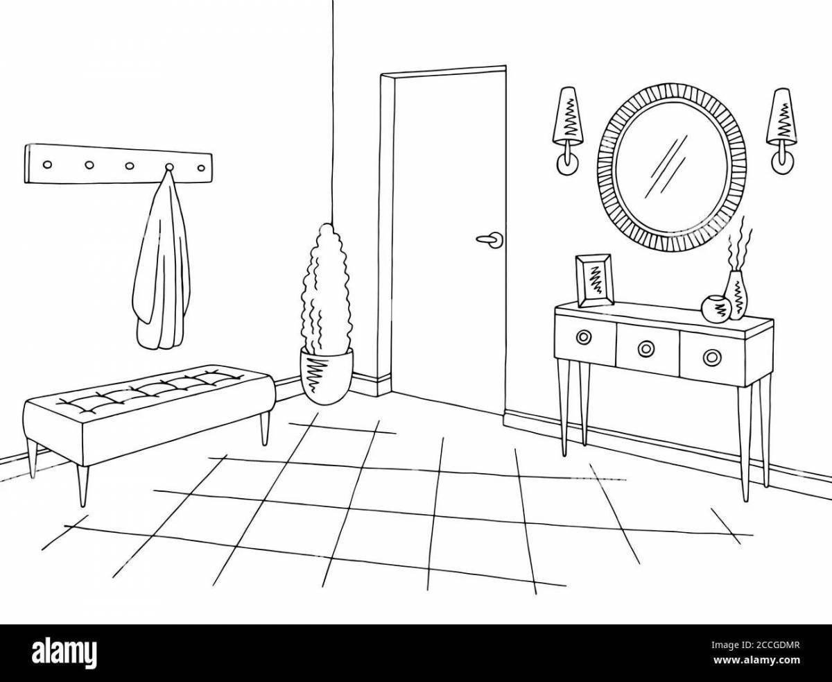 ![Раскраска прихожая с мебелью]()