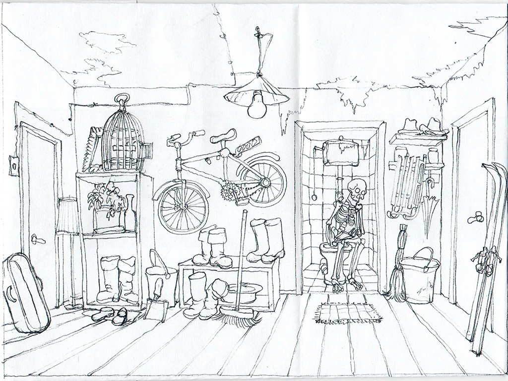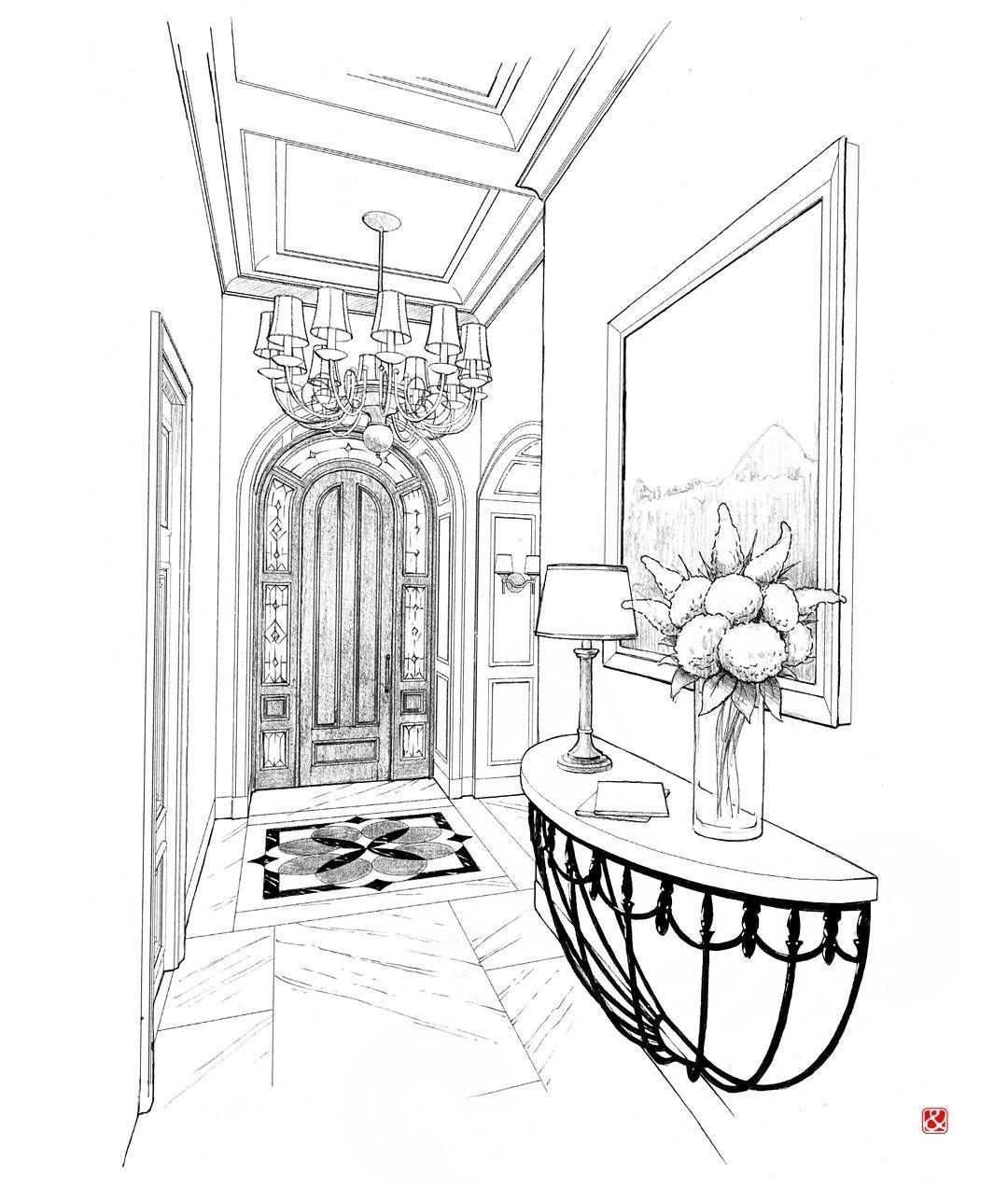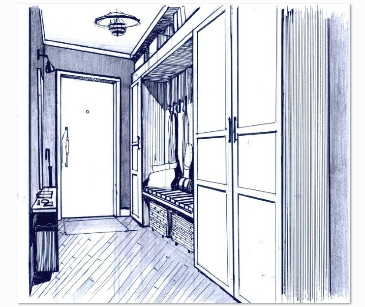 ![Эскиз прихожей карандашом]()