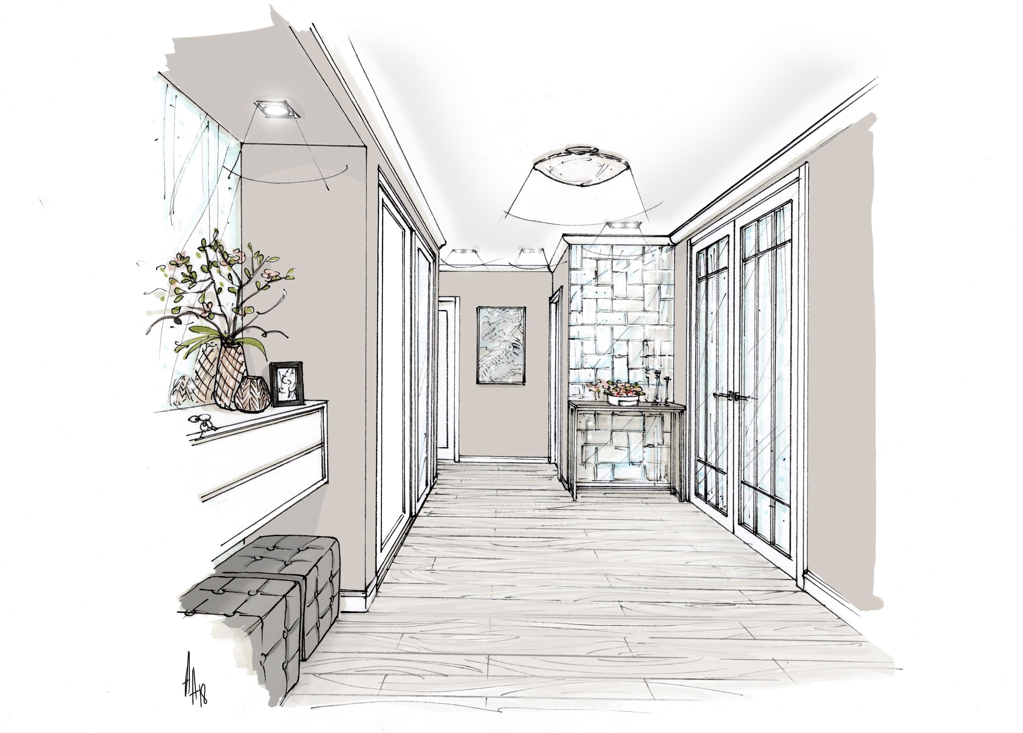 Эскиз интерьера прихожей