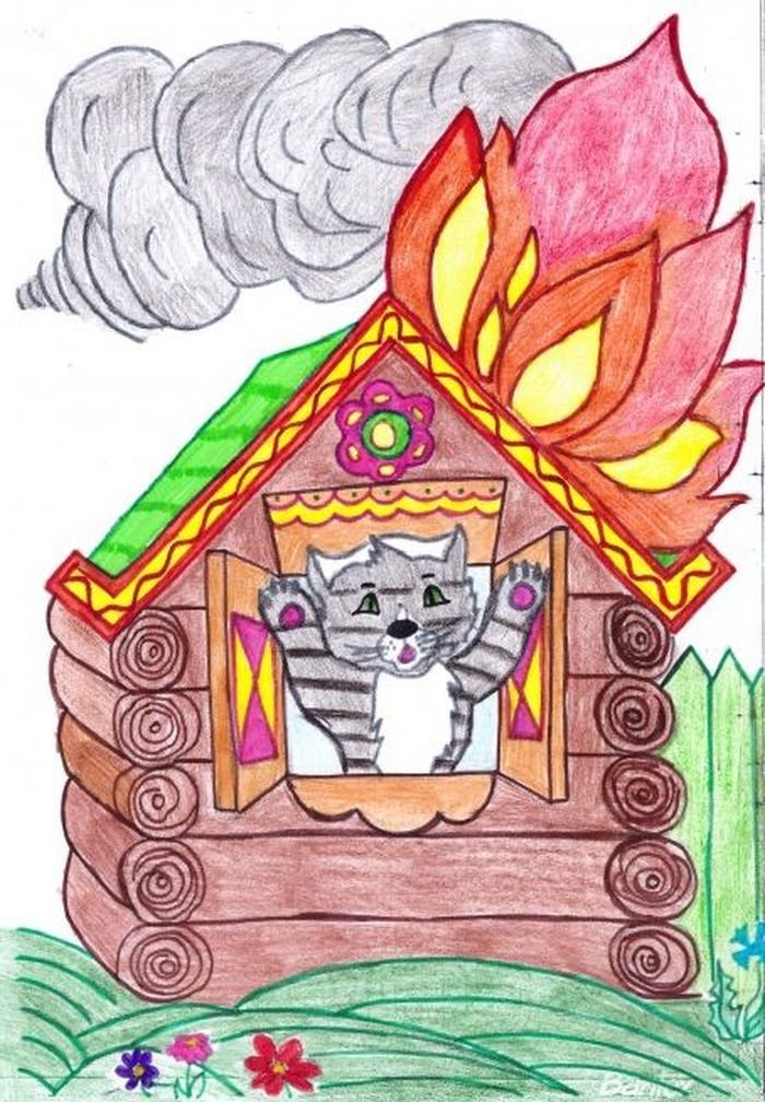 ![Раскраска Кошкин дом пожар]()