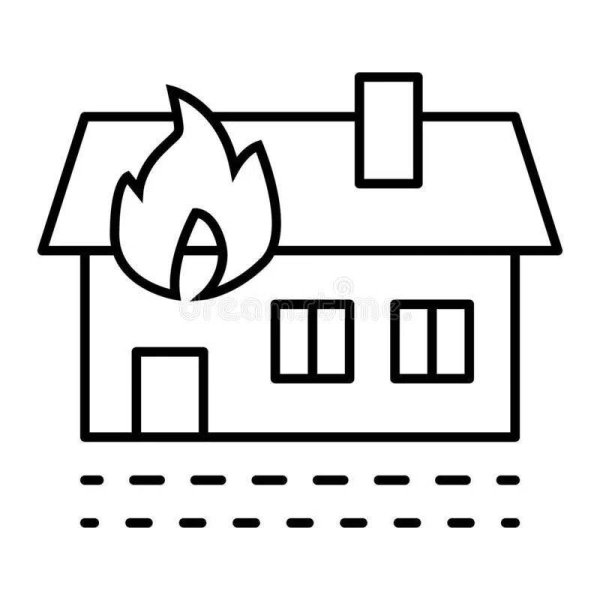 ![Горящий дом раскраска]()