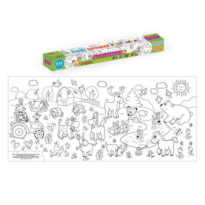 Веселая деревушка очень большая раскраска