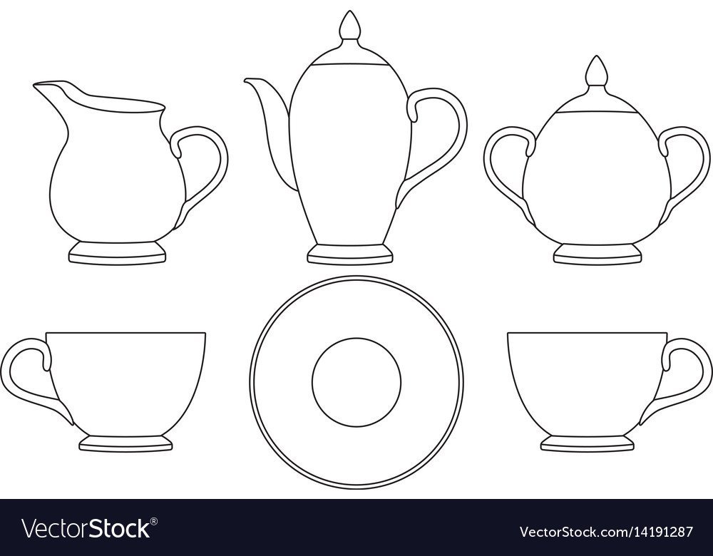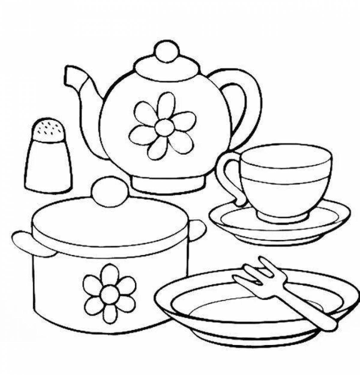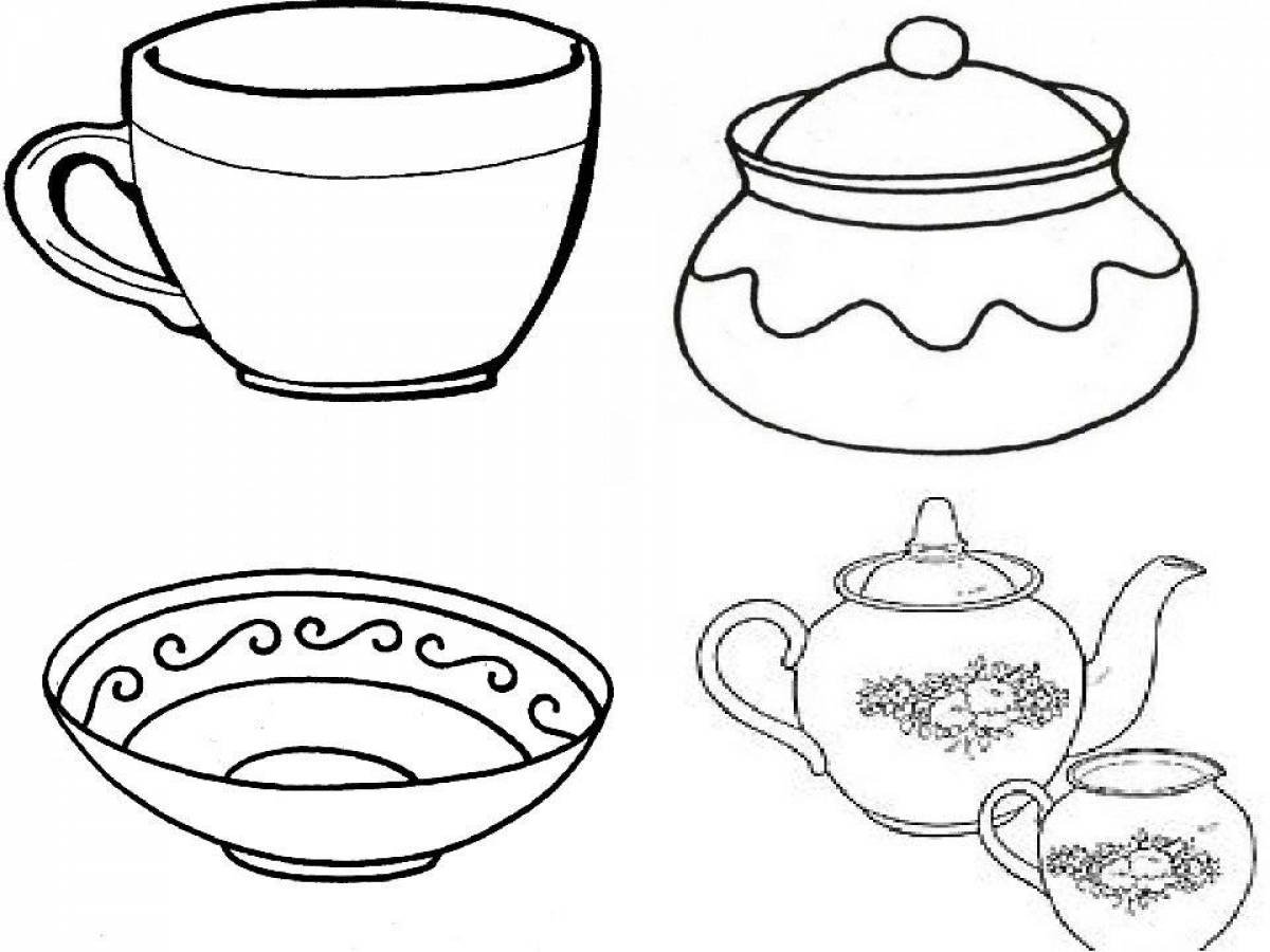 ![Чайная посуда раскраска для детей]()
