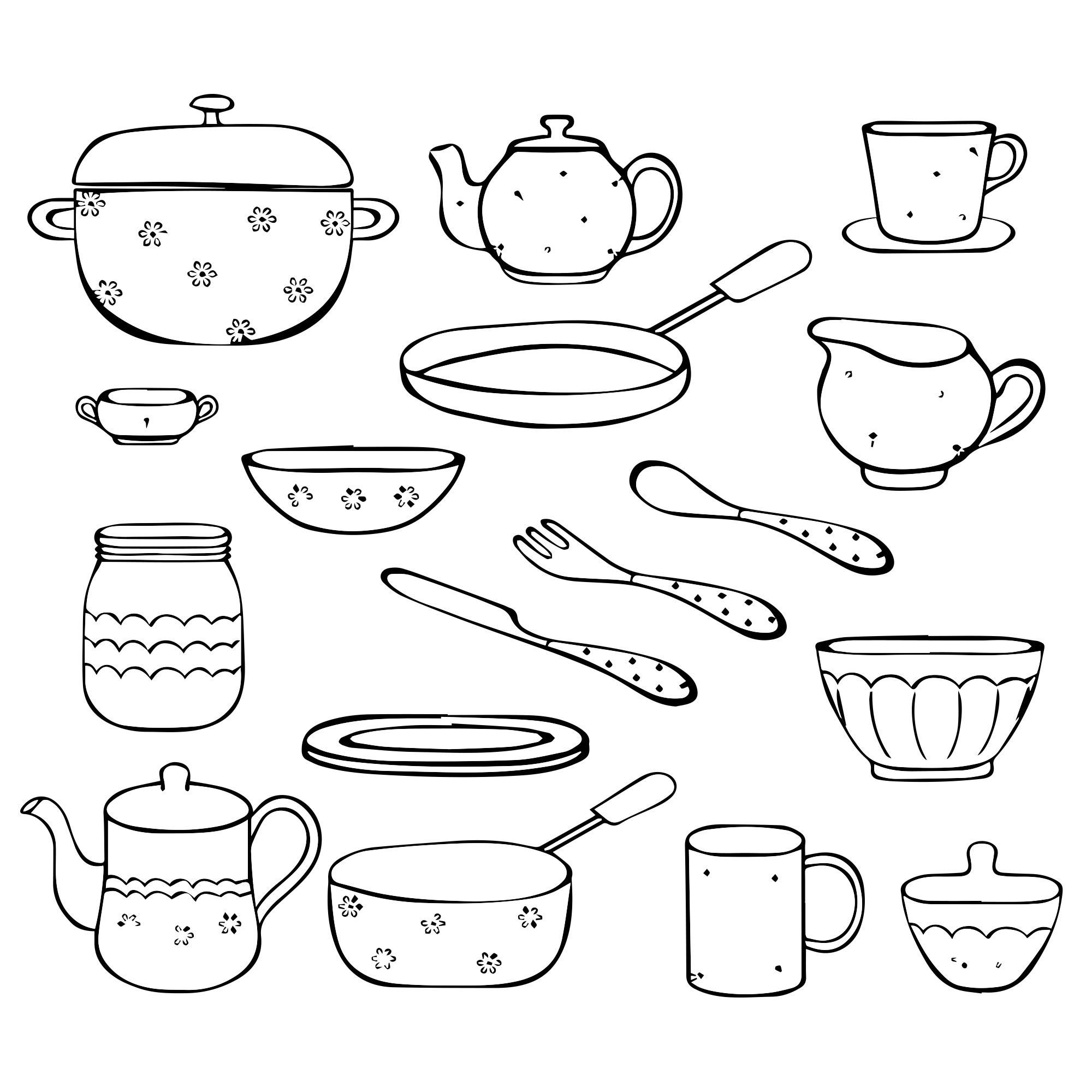 ![Раскраска кухонная посуда]()