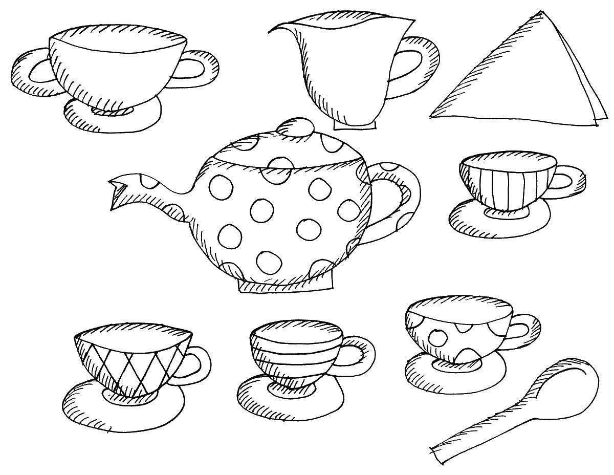 Чайная посуда раскраска для детей