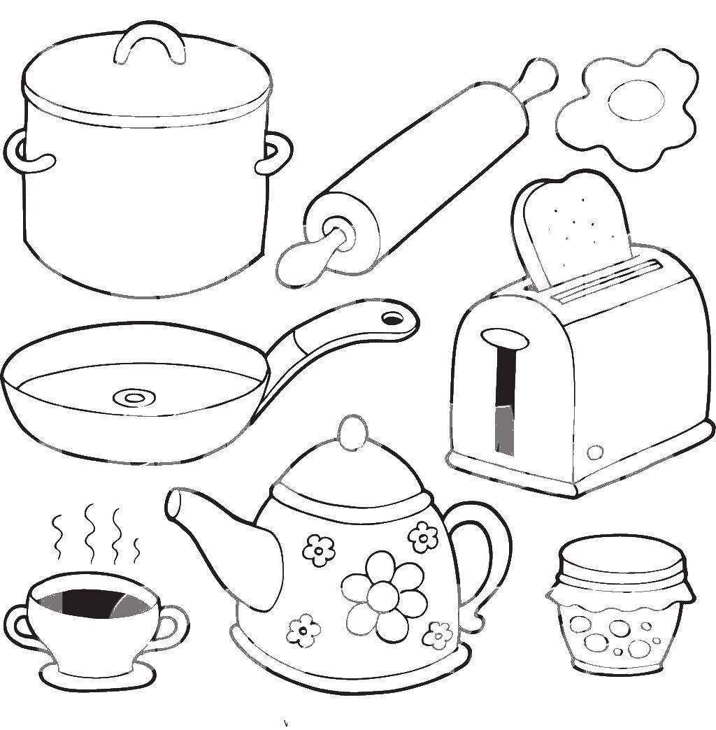 ![Кухонная посуда раскраска для детей]()