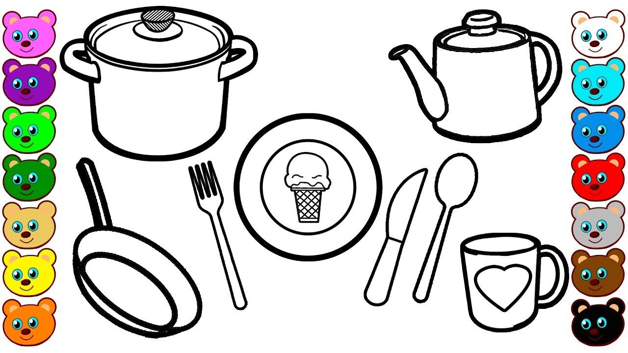 Кухонная посуда раскраска для детей